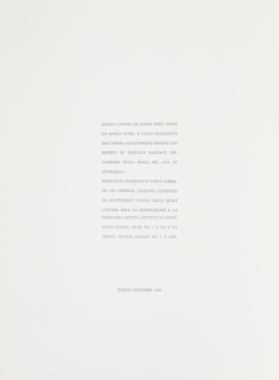 MARIO MERZ (1925-2003) Da un Erbario raccolto nel 1979 in Woga-Woga...