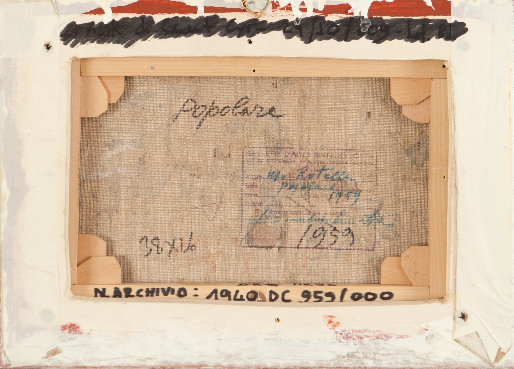 bibliografia: Mimmo Rotella Catalogo ragionato a cura di Germano Celant Volume I Tomo II 1944-1961 Skira Milano 2016 pag.660 N.1959 103