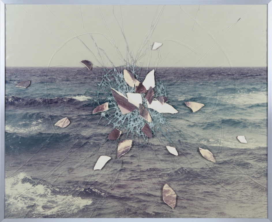 fotografia a colori collage su vetro infranto e cornice in alluminio cm 102x128