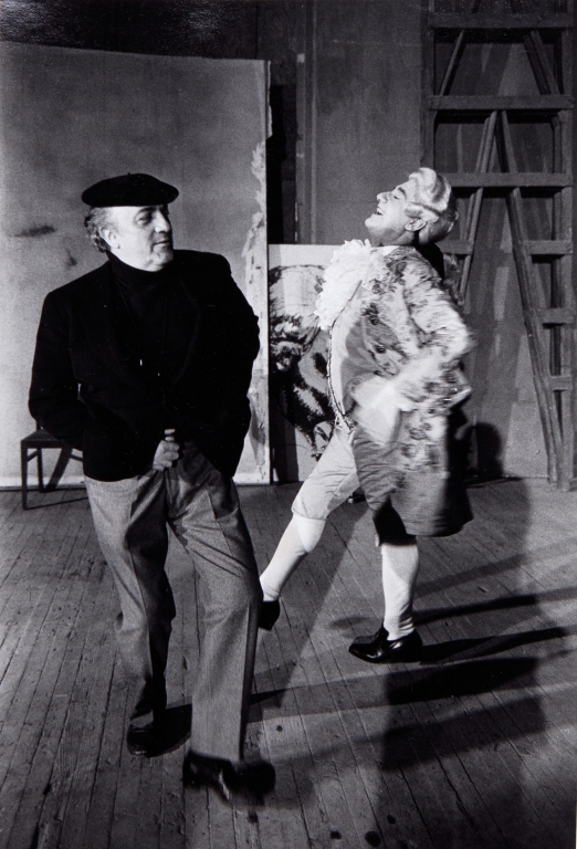 Federico Fellini e Marcello Mastroianni durante i provini per 'Il Casanova' di Fellini per la TV