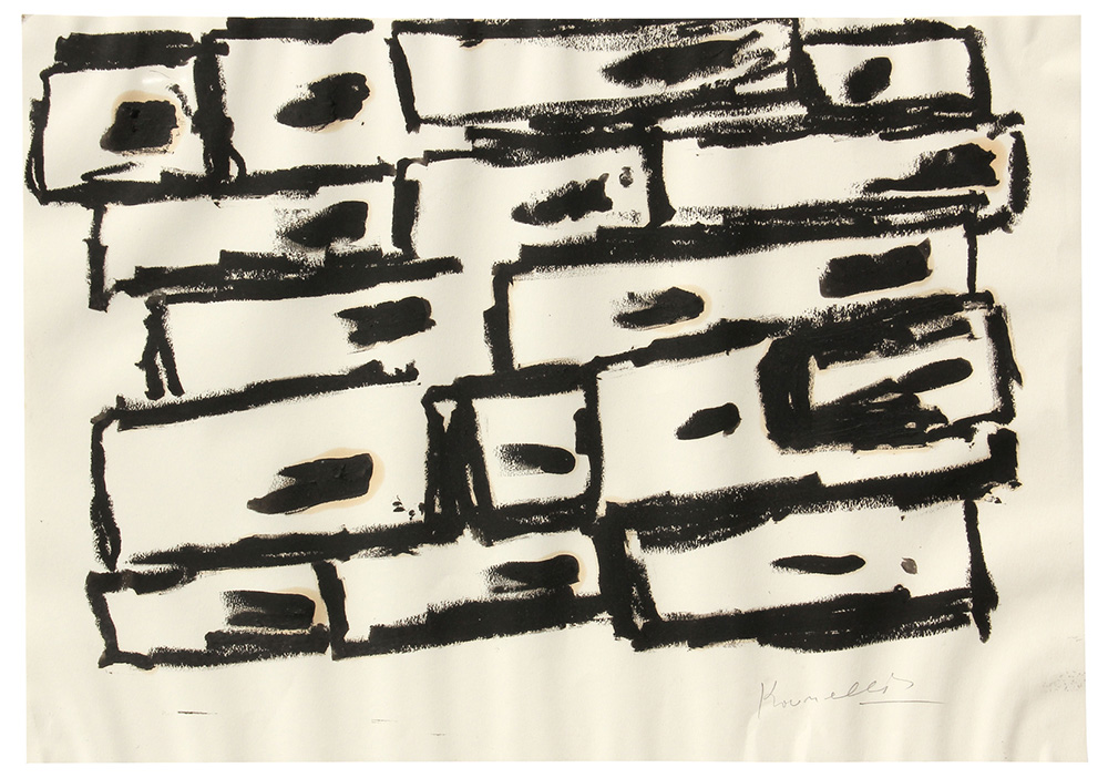 Jannis KOUNELLIS (Pireo 1936-03-21 Roma, 2017) Senza titolo 1996 tecnica mista su cartoncino cm. 42 x 59Firma "Kounellis" (in basso a destra)