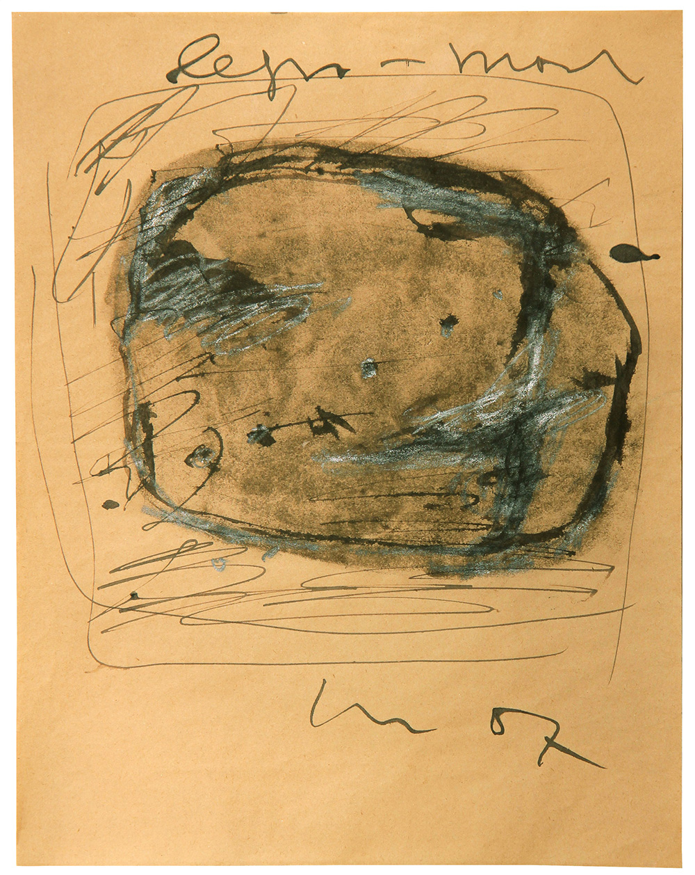 Lucio FONTANA (Rosario Santa Fè 1899-02-19 Varese 1968-11-06) Studio per parete spaziale (legno-piombo) 1957 inchiostro su carta cm. 32.5 x 24.4L. M. Barbero "Lucio Fontana. Catalogo ragionato delle opere su carta. Tomo II", Skira, Milano 2013, p. 748, ill. 57 DAD 12Titolo "Legno-piombo" (in alto); firma, data "Fontana, 57" (in basso a destra)
