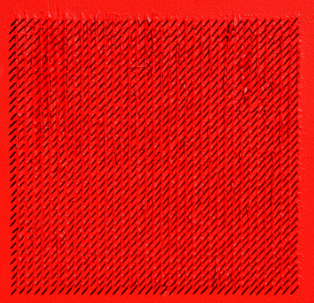 Bernard AUBERTIN (Fontenay-aux-Roses 1934-01-01 Reutlingen, 2015 ) Tableau clous 1969 chiodi su tavola cm. 40 x 40Firma, data "Bernard Aubertin, 1969" (al retro)