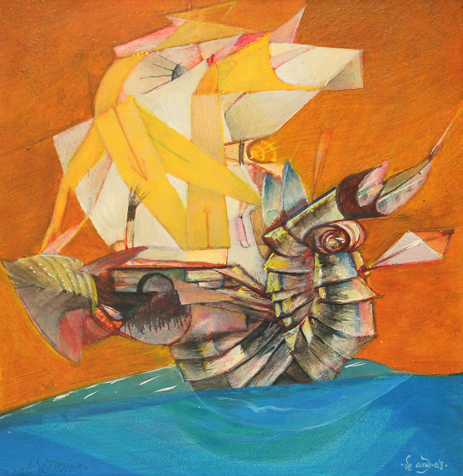 Giovanni Battista DE ANDREIS (Badalucco 1938) Senza titolo olio su tavola cm. 33 x 30.5Firma "De Andreis" (in basso a destra) Timbro della Galleria Il Cannocchiale, Milano (al retro)