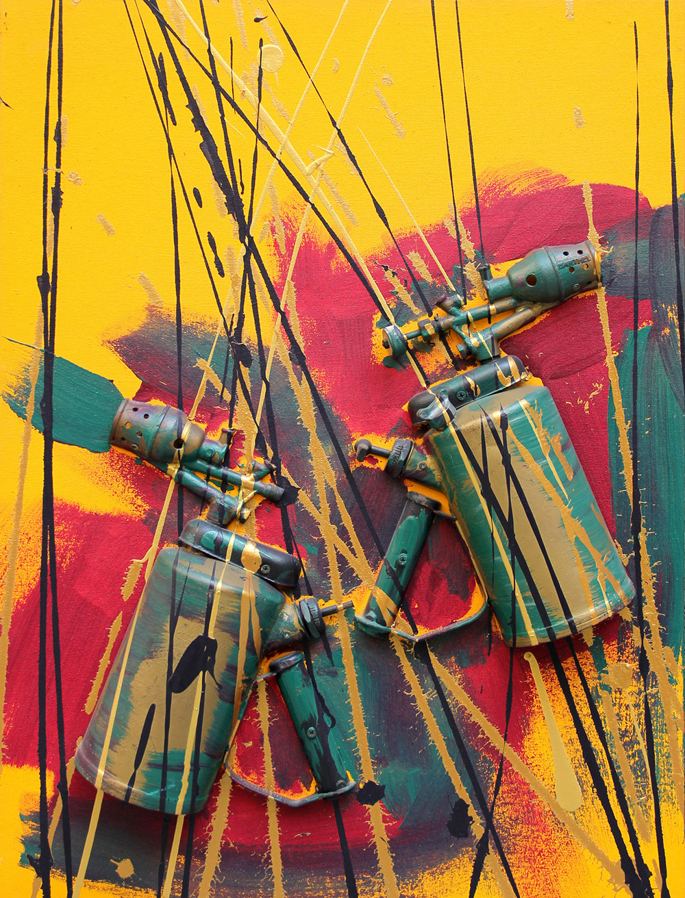 Fernandez ARMAN (Nizza 1928-11-17 New York 2005-10-22) Senza titolo 2003 spruzzatori tagliati e acrilici su tela riportata su tavola cm. 81 x 60firma "Arman" (sul bordo inferiore) Timbro della Galleria Bluart, Padova (al retro)