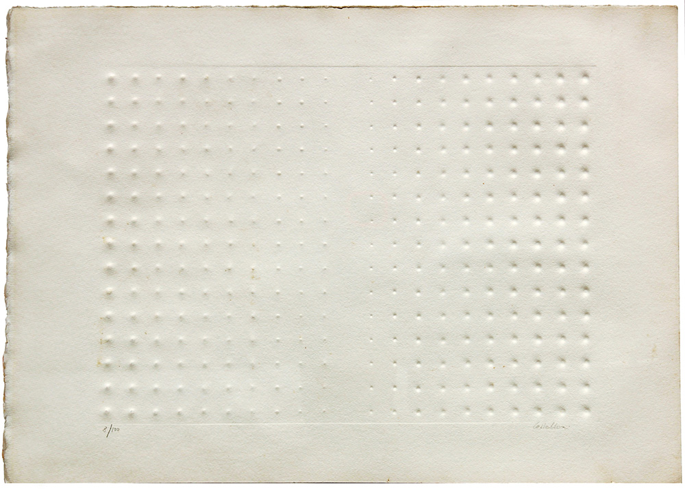 Enrico CASTELLANI (Castelmassa 1930-08-04 Celleno 2017-12-01) Rilievo 1976 litografia a rilievo cm. 50 x 70"Enrico Castellani. Opera grafica 1960-1995", tavola 26Edizione di 100 esemplari Numerazione "8/100" (in basso a sinistra); firma "Castellani" (in basso a destra)