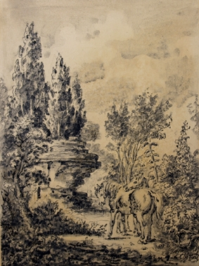 DE CHIRICO GIORGIO (Volos 1888 - Roma 1978) "Paesaggio con cavallo" anni...