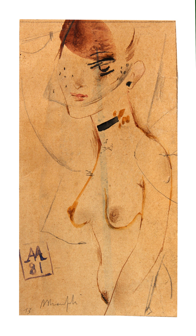 Alberto MANFREDI (Reggio Emilia, 1930 Reggio Emilia,2001) Senza titolo 1981 matita e acquarello su carta cm. 19 x 11Iniziali, data, firma "AM, 81, Manfredi" (in basso a sinistra)