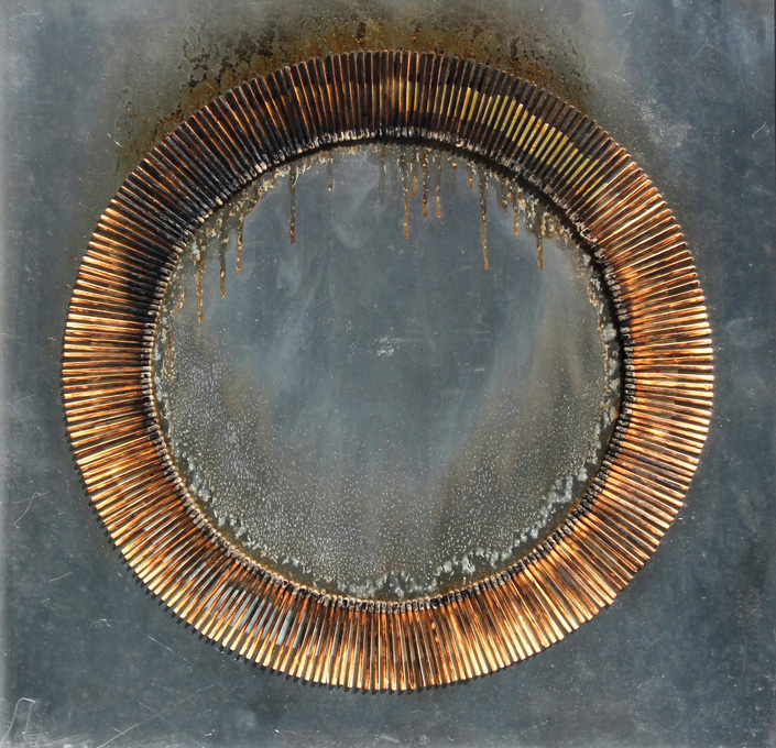Bernard AUBERTIN (Fontenay-aux-Roses 1934-01-01 Reutlingen, 2015) Dessin de feu sur aluminium 2011 fiammiferi bruciati su alluminio cm. 50 x 50G. Rovetta, M. Gazzotti "Bernard Aubertin. Le Pyromane. Opere dal 1966 al 2012", Poleschi Arte, Milano 2015, p. 50Firma, data "Bernard Aubertin, 2011" (al retro)