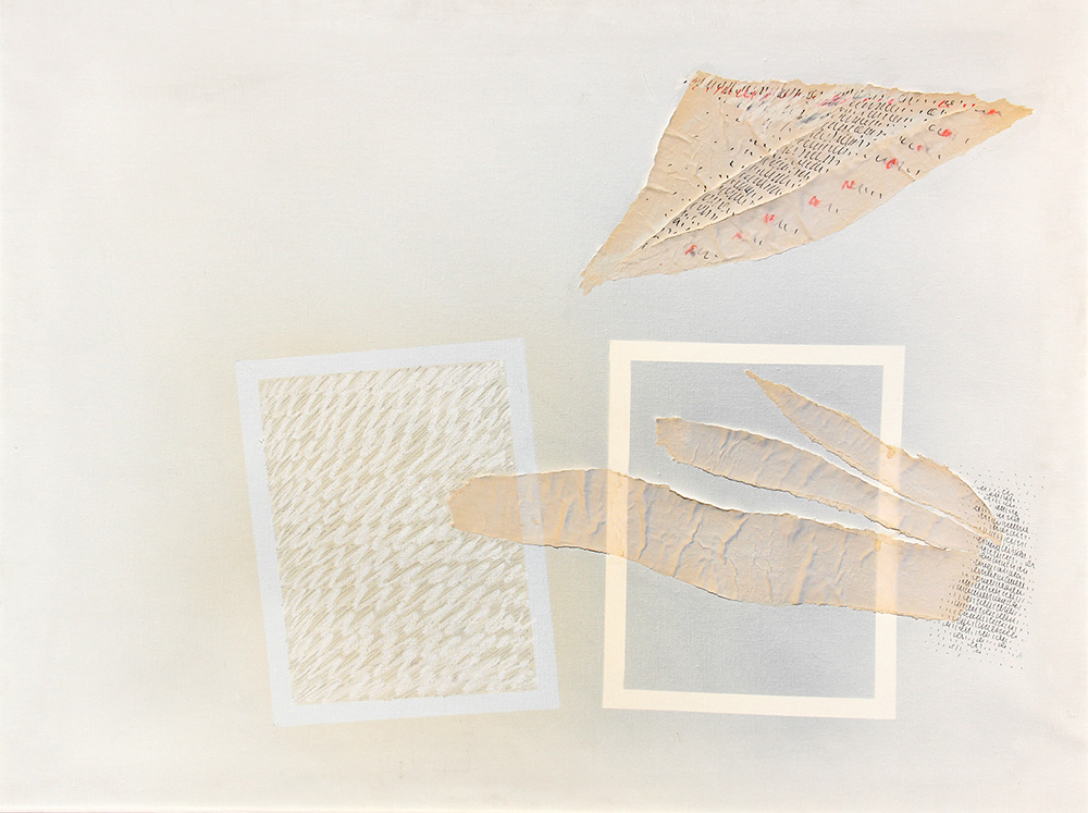 Agostino FERRARI (Milano 1938-11-09) Isola 1981 tecnica mista e collage su tela cm. 80 x 100M.Corgnati "Agostino Ferrari - catalogo generale", Electa, Milano, 2018, p.289 (sono riportate tecnica e misure errate)Data, firma, titolo "81, Agostino Ferrari, Isola" (al retro)