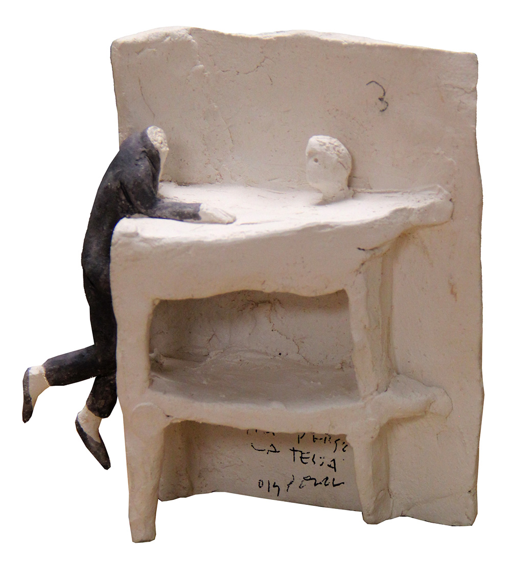 Pino DEODATO (Nao di Jonadi (Vibo Valentia) 1950-01-01) Ho perso la testa 2014 terracotta policroma cm. 15 x 15 x 8"Cerco trovo Pino Deodato", a cura di M. Meneguzzo, progettoarte-elm, Milano, 2014, p. 104Titolo, data, firma "Ho perso la testa, 014, P. Deodato" (in basso al centro)
