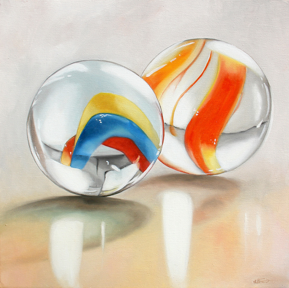 Alessandra BARUZZO (La Spezia, 1972) Realtà di vetro 2019 olio su tela cm. 40 x 40Firma "A. Baruzzo" (in basso a destra) Firma, titolo, luogo, data, firma "Alessandra Baruzzo, Realtà di vetro, Sarzana, 2019, Alessandra Baruzzo" (al retro)