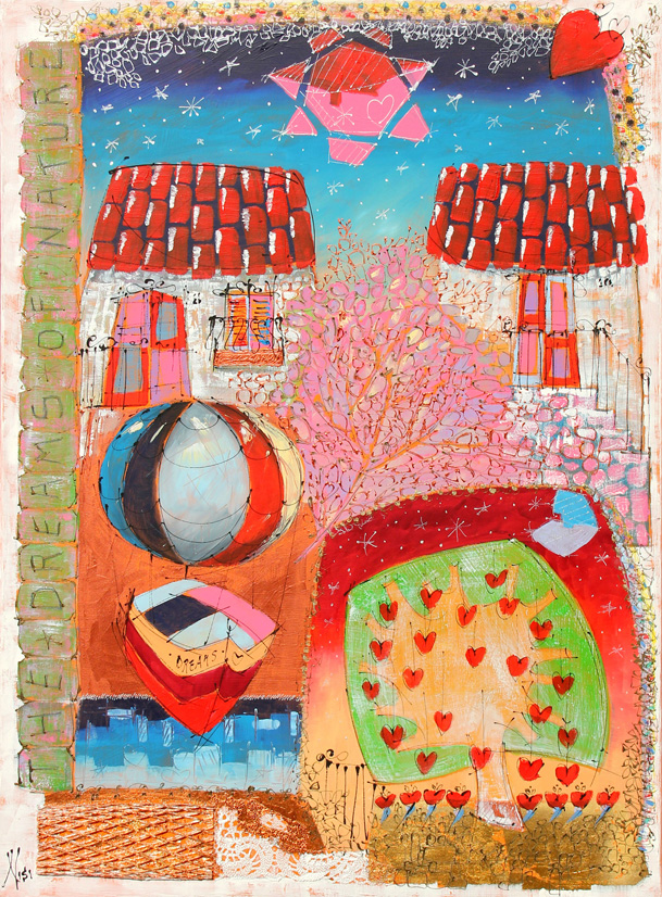 Leo NISI (Modugno 1959) The dreams of nature tecnica mista su tela cm. 100 x 70Titolo "The dreams of nature" (a sinistra); firma "Nisi" (in basso a sinistra) Titolo, firma "The dreams of nature, I sogni della natura, Nisi" (al retro)