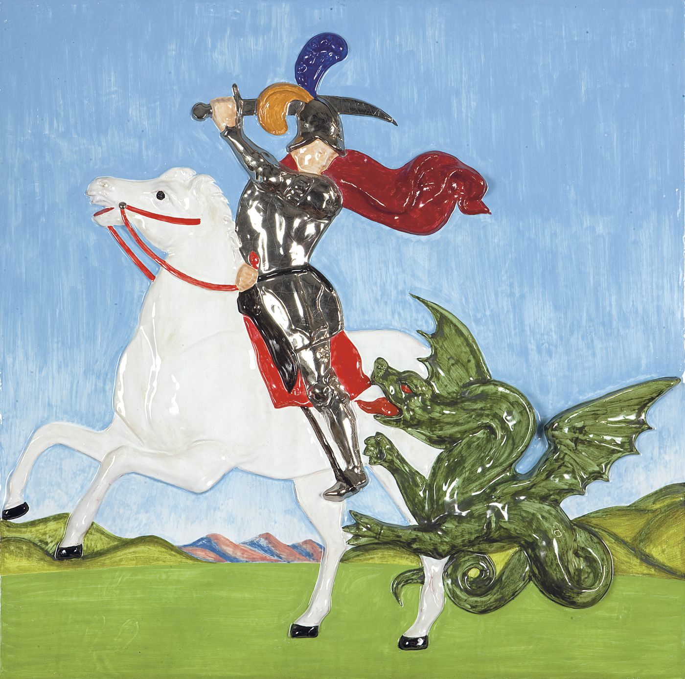 SALVO Leonforte (EN) 1947 "San Giorgio e il Drago" 64x64 ceramica smaltata,...