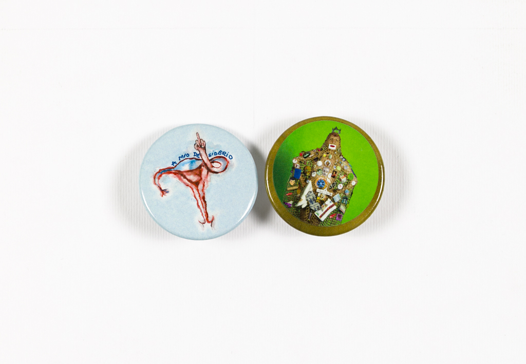 Cofanetto in edizione limitata di 200 esemplari edito in occasione dell'uscita del catalogo della mostra 'Take Me (I'm Yours)' e comprendente due spille di Luigi Ontani, una stampa offset di Armin Linke, un testo di Rosa Aiello