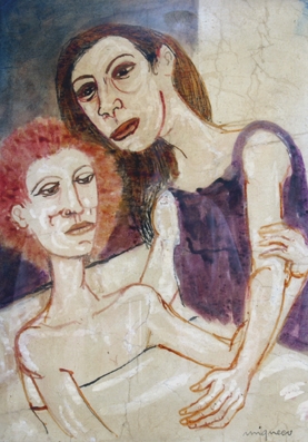 Firma in basso a destra. Autentica dell'autore su foto. Etichetta al retro della Galleria Cafiso (Mi) e timbro della Sant'Erasmo Club Arte (Mi). La carta ha diverse screpolature.