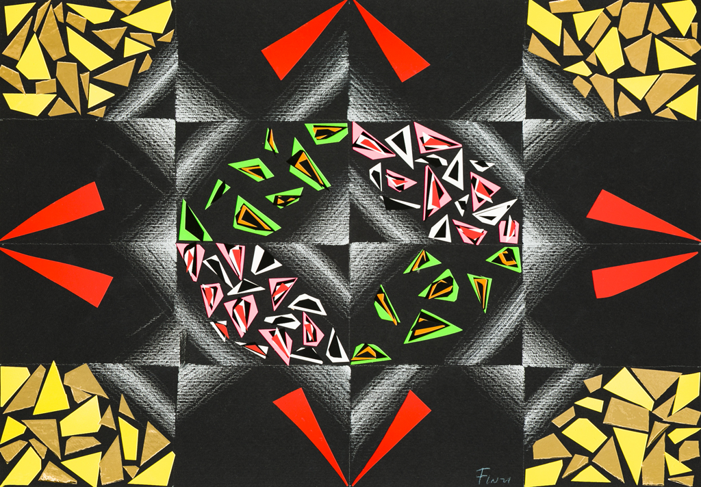 ENNIO FINZI (1931)Senza TitoloTecnica mista e collage su cartoncino nerocm...