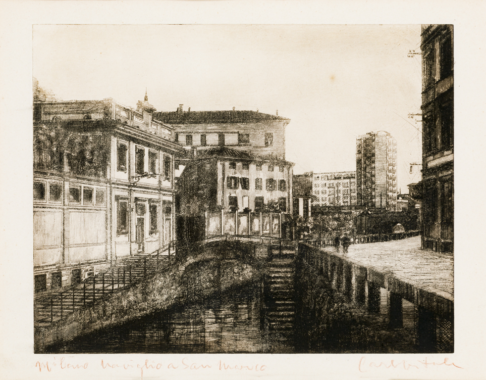 CARLO VITALE (1902-1996)Milano. Naviglio a San MarcoIncisioneLastra cm...