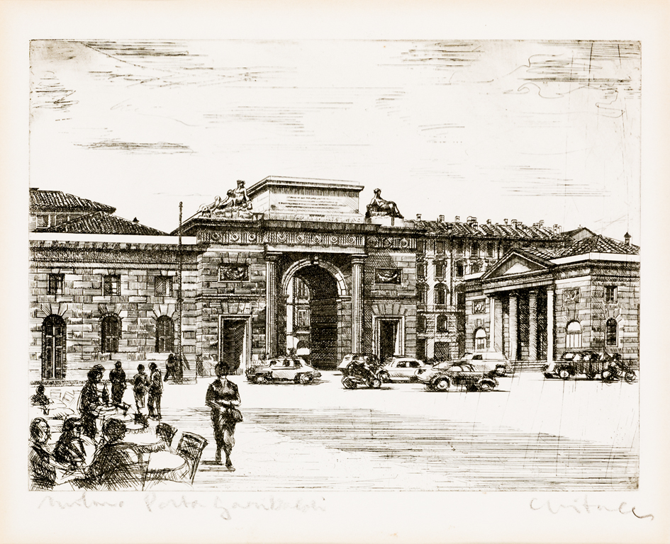 CARLO VITALE (1902-1996)Milano. Porta GaribaldiIncisioneLastra cm...
