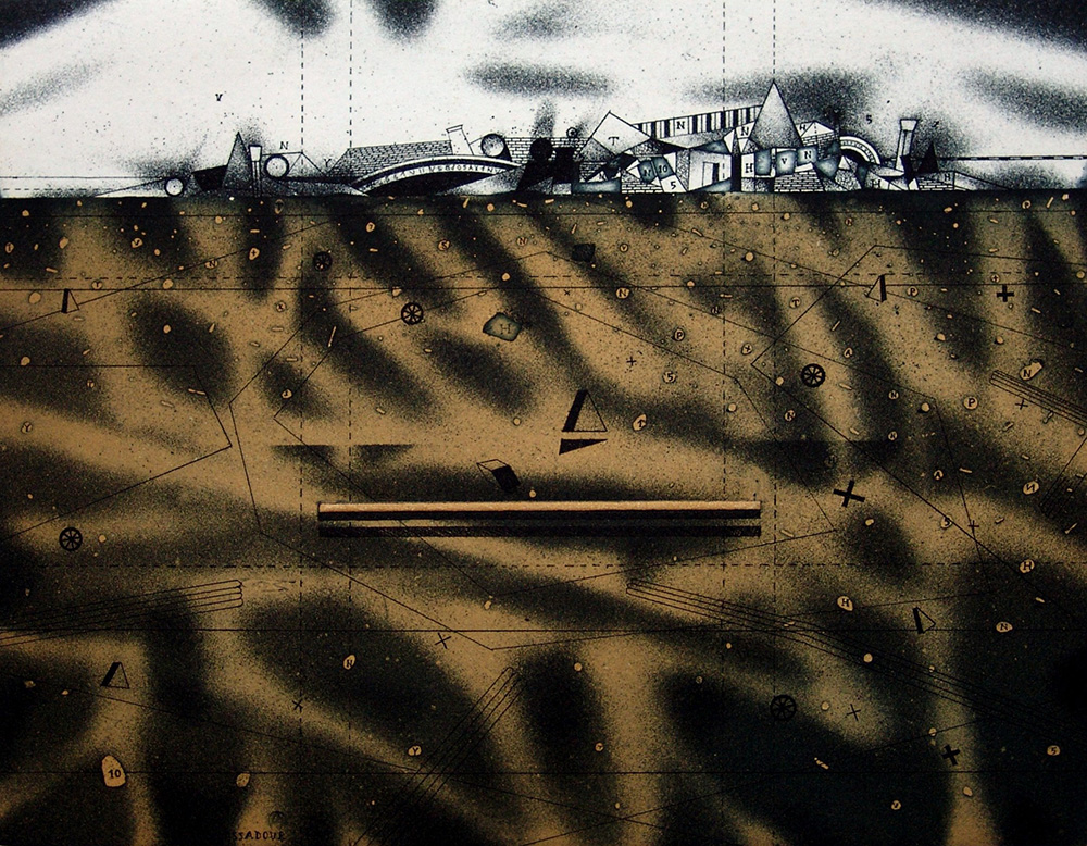 Assadour 1943, Beirut - [Libano] Traces acquaforte acquatinta 56,5x45 cm 1983 es. 5/75; firma dell’artista a destra certificato di autenticità Picenum