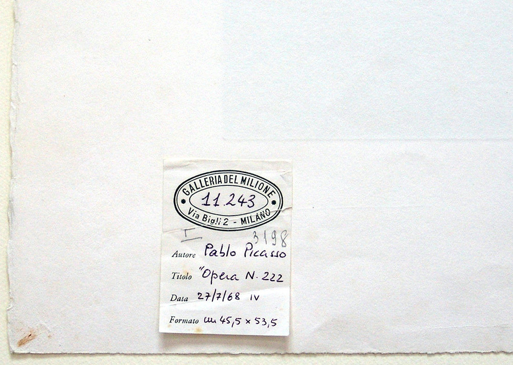 Pablo Picasso 1881, Malaga (Spagna) - 1973, Mougins (Francia) - [Spagna] L. 222 incisione, maniera nera 45,5x53,5 cm 1968 es. 37/50; firma dell’artista in basso a destra opera pubblicata in "Pablo Picasso - Catalogue of the printed graphic work 1966-1969, volume II" Editions Kornfeld et Klipstein di Berna, a cura di Georges Bloch, 1971; cartiglio sul retro Galleria del Milione di Milano