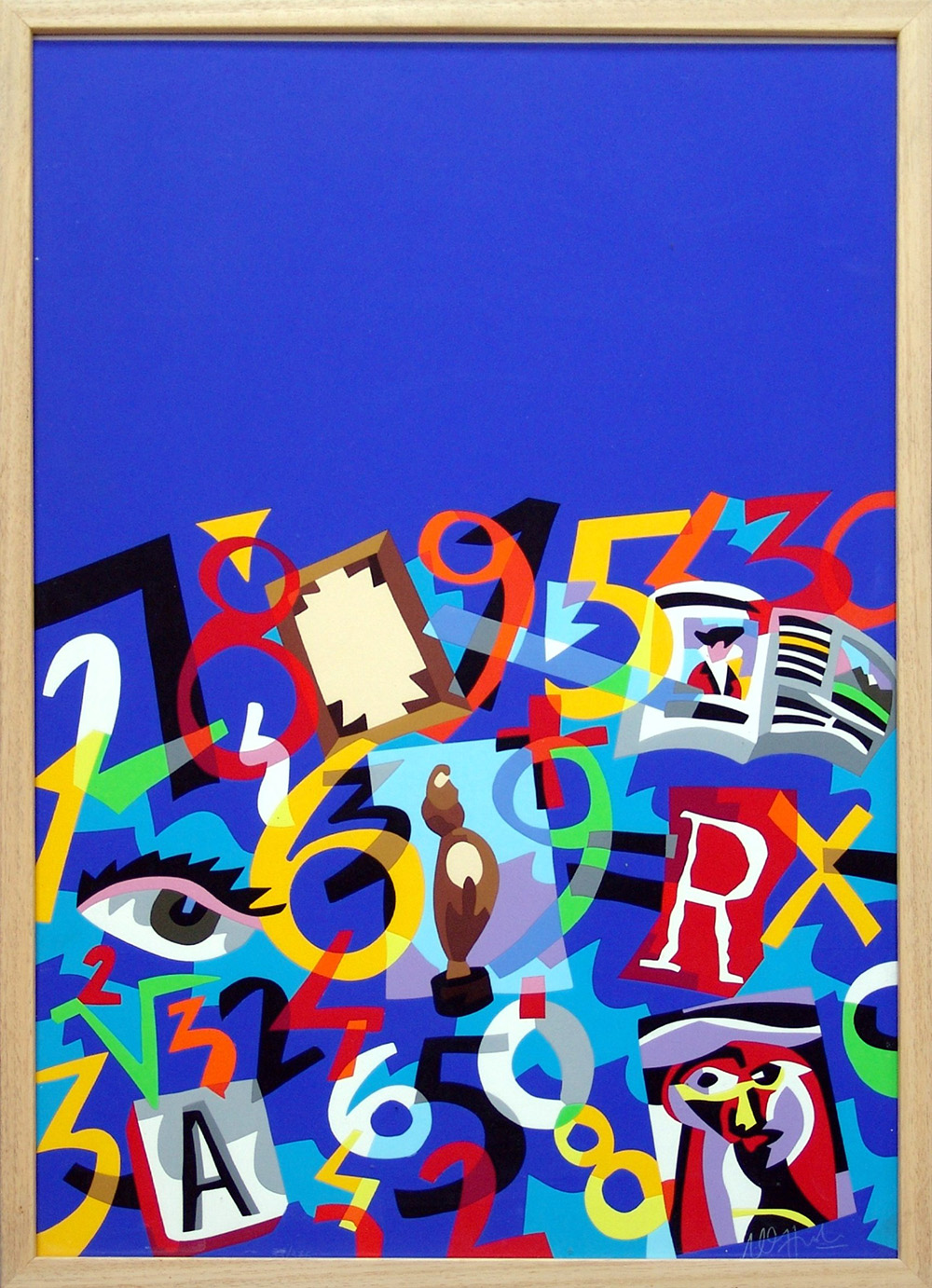 Ugo Nespolo 1941, Mosso (Bi) - [Italia] I numeri si amano serigrafia 70x50 cm es. 33/375; firma dell’artista in basso a destra; opera con cornice certificato di autenticità Picenum