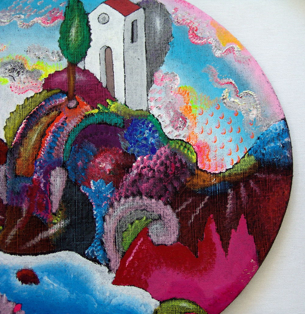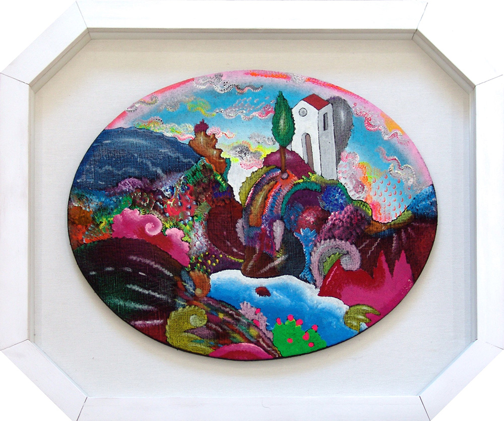 Luca Alinari 1943, Firenze (Fi) - 2019, Firenze (Fi) - [Italia] senza titolo olio su tessuto applicato su tavola ovale 40x50 cm firma dell’artista sul retro; opera con cornice certificato di autenticità dell’artista su fotografia