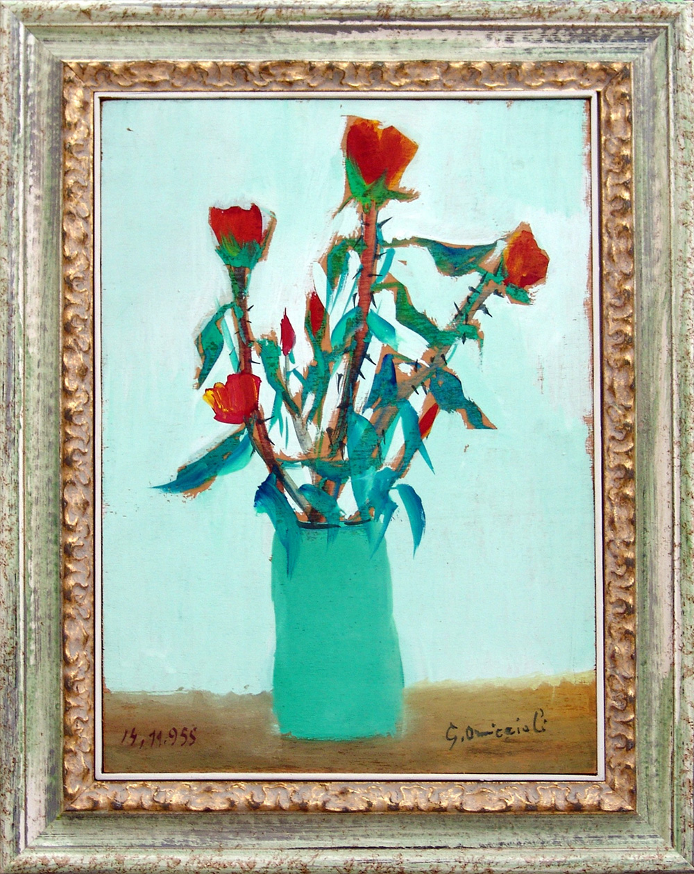 Giovanni Omiccioli 1901, Roma (Rm) - 1975, Roma (Rm) - [Italia] senza titolo olio su tavola 35x25 cm 1955 firma dell’artista in basso a destra; opera con cornice certificato di autenticità Picenum