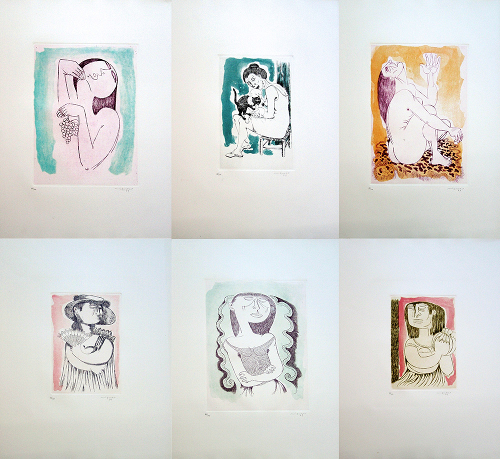 Giuseppe Migneco 1908, Messina (Me) - 1997, Milano (Mi) - [Italia] Le donne acquaforte acquatinta 70x50 cm cad. 1971 es. 39/100; cartella con 6 acqueforti acquetinte firmate dall’artista; Edizioni d'arte Torcular certificato di autenticità Picenum