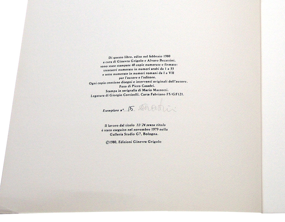 Marco Gastini 1938, Torino (To) - 2018, Torino (To) - [Italia] senza titolo libro d'arte con interventi originali dell'autore 48,5x32 cm 1980 es. 15/33; edizione Ginevra Grigolo certificato di autenticità Picenum