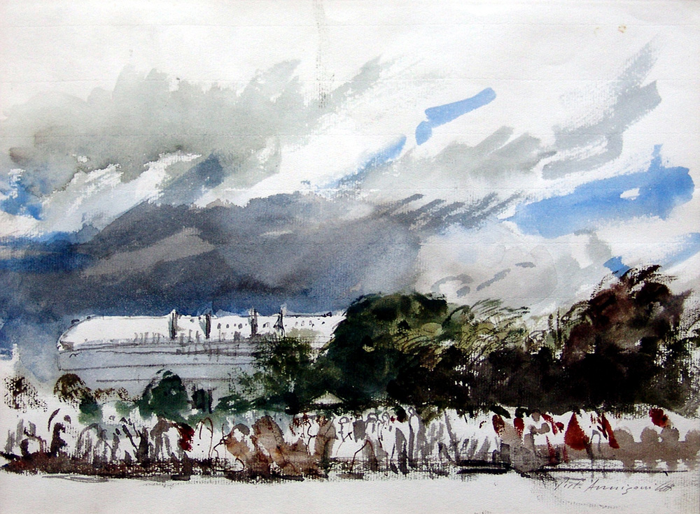Pietro Annigoni 1910, Milano (Mi) - 1988, Firenze (Fi) - [Italia] senza titolo china su carta 23x31 cm firma dell'artista in basso a destra; opera con cornice certificato di autenticità Picenum