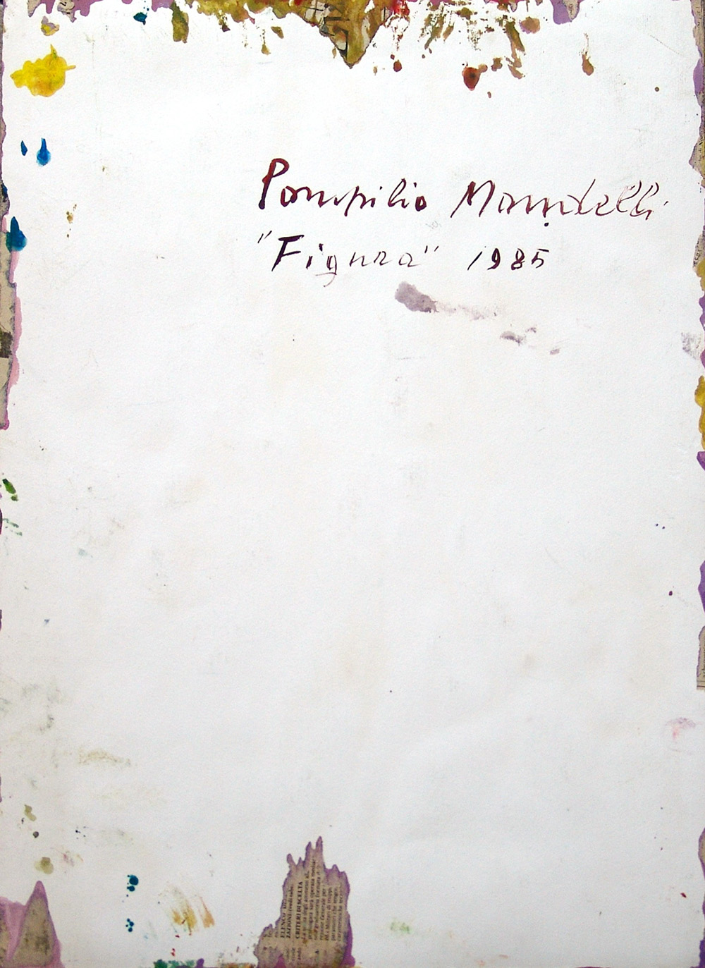 Pompilio Mandelli 1912, Luzzara (Re) - 2006, Bologna (Bo) - [Italia] Figura olio su cartoncino 50x35 cm 1985 firma dell'artista in basso a destra e sul retro certificato di autenticità Picenum