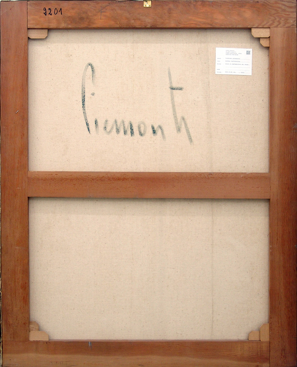 Lorenzo Piemonti 1935, Carate Brianza (Mb) - 2015, Carate Brianza (Mb) - [Italia] Sedia carboncino olio e carboncino su tela 100x81 cm c. 1960 firma dell’artista in basso a destra e sul retro certificato di autenticità di Francesca Piemonti