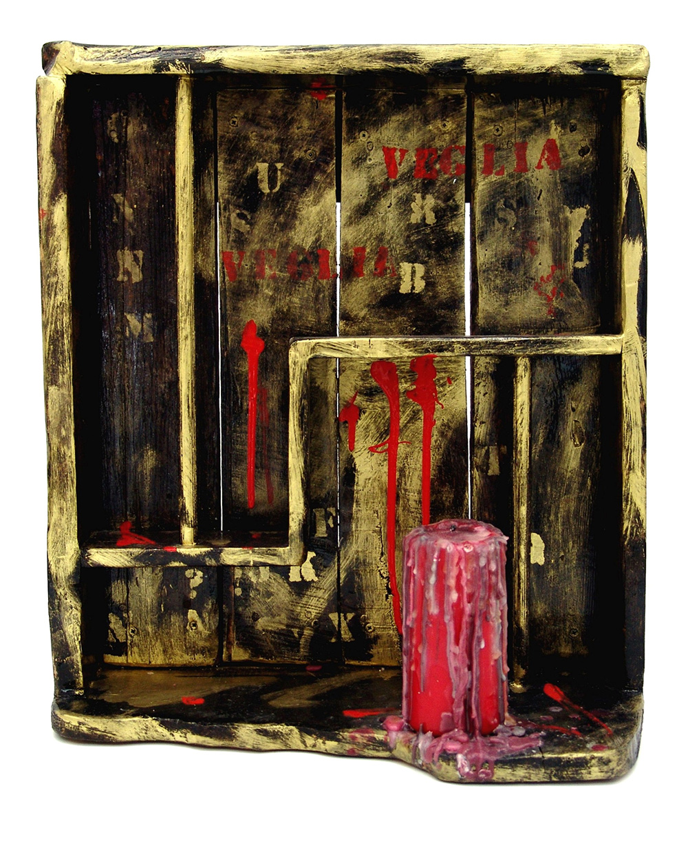 Roberto Rapaccini 1960, Terni (Tr) - [Italia] Veglia assemblaggio di materiali 42x37x19 cm 2018 certificato di autenticità dell'artista su fotografia