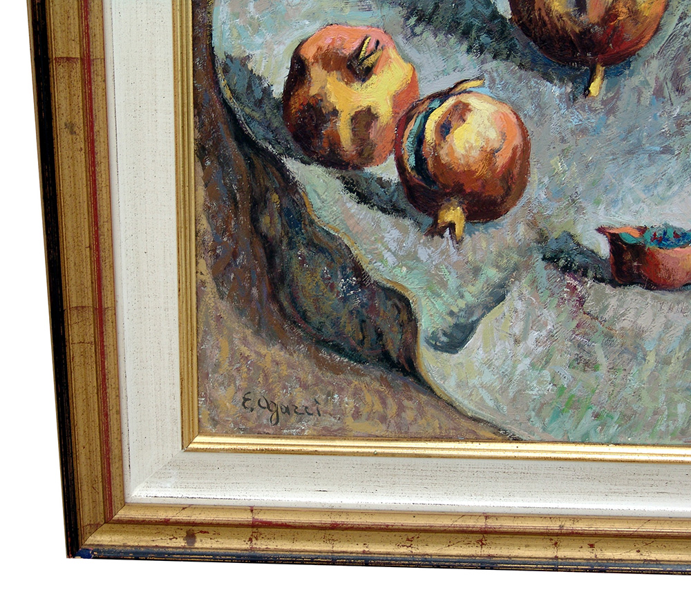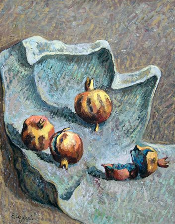Ermenegildo Agazzi 1866, Mapello (Bg) - 1945, Bergamo (Bg) - [Italia] Natura morta olio su compensato 54x43 cm firma dell'artista in basso a sinistra; opera con cornice certificato di autenticità della Capitolium di Brescia