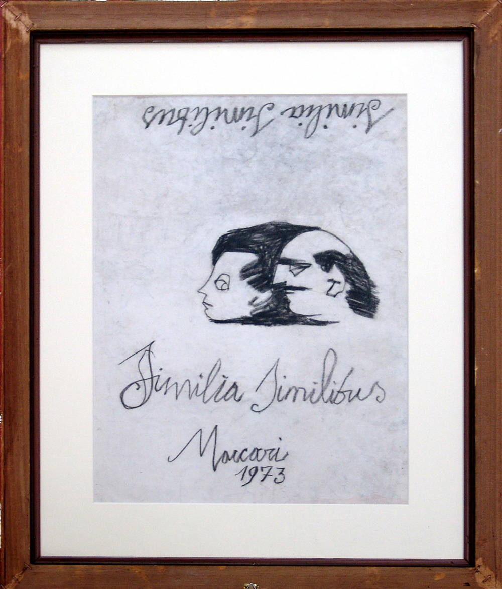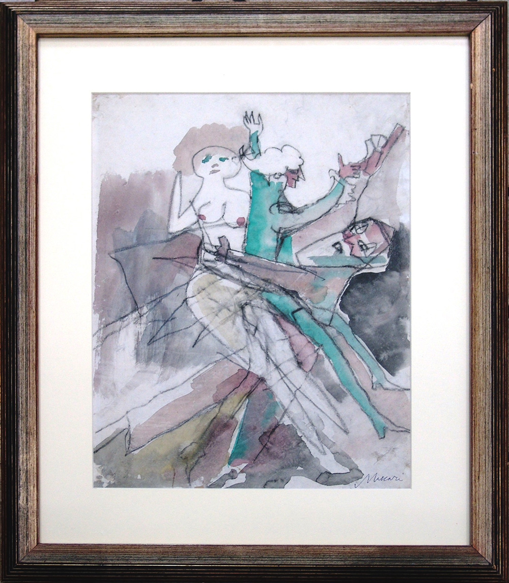 Mino Maccari 1898, Siena (Si) - 1989, Roma (Rm) - [Italia] Figure tecnica mista su carta disegnata recto e verso 48x37 cm 1973 firma dell’artista in basso a destra e sul retro; opera con cornice opera archiviata dall'Archivio delle opere di Mino Maccari al numero 4488 in data 11/02/2017