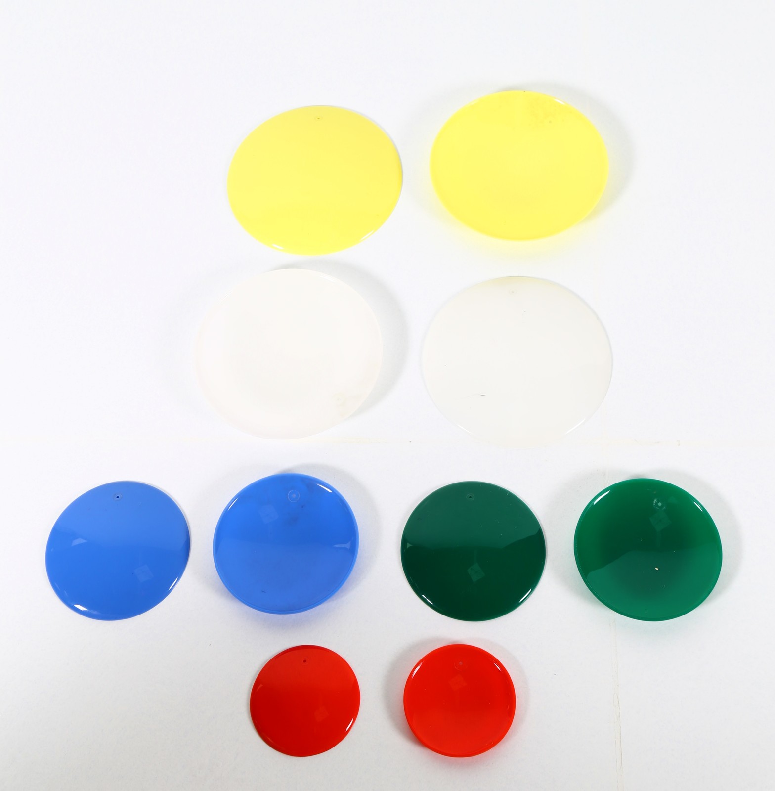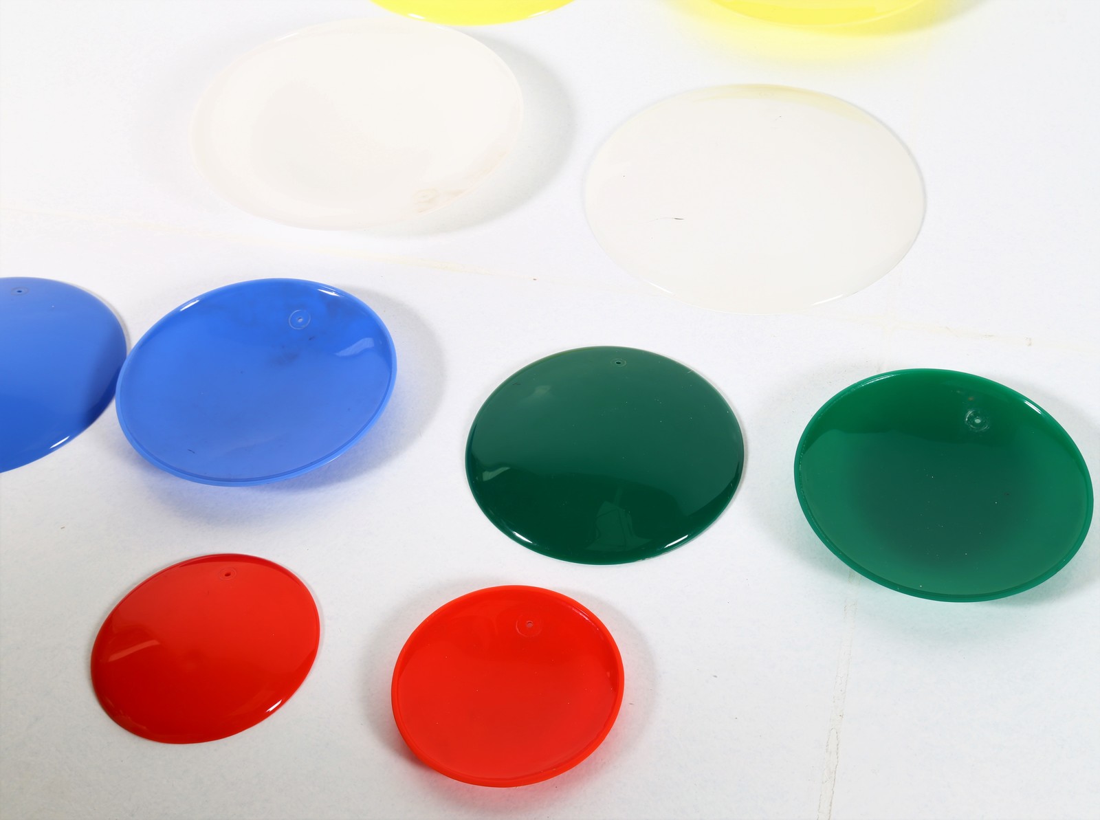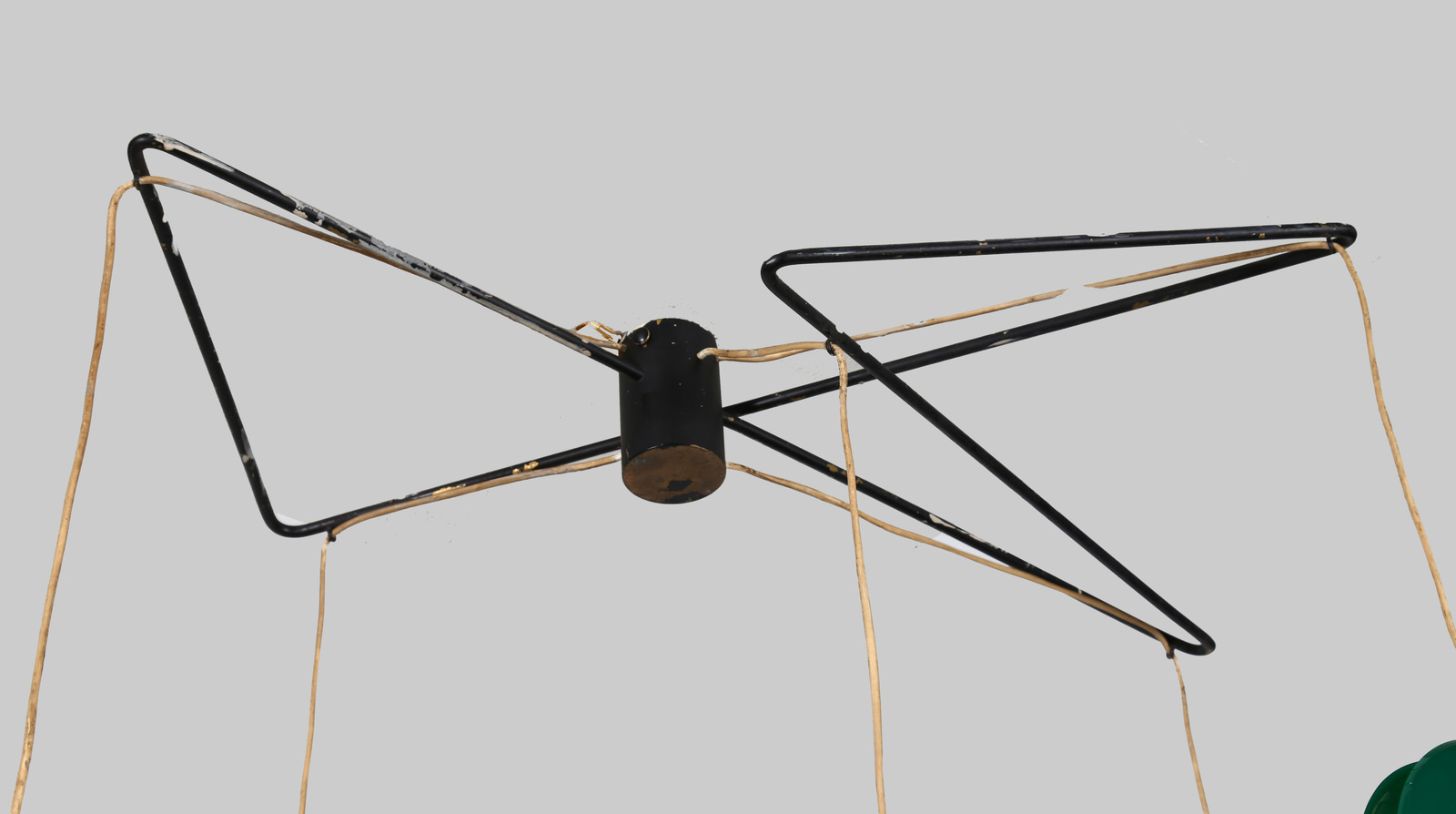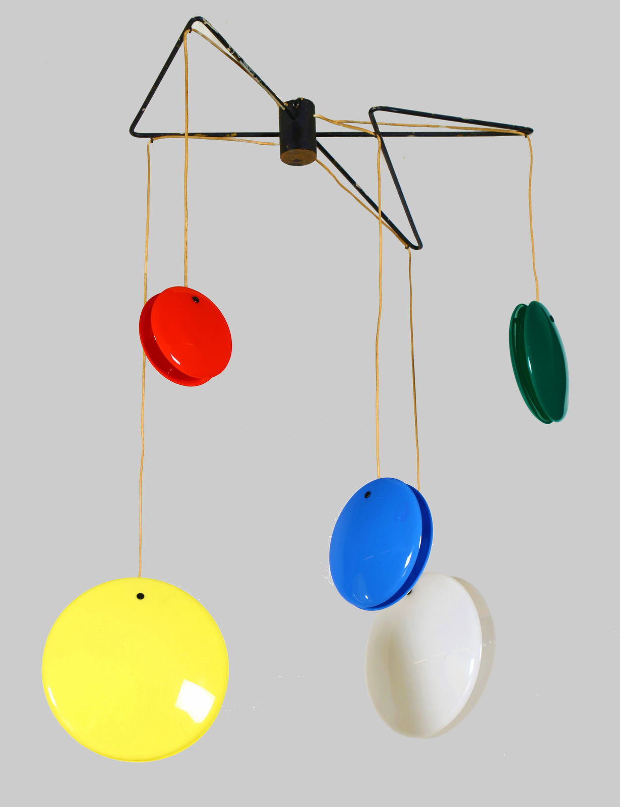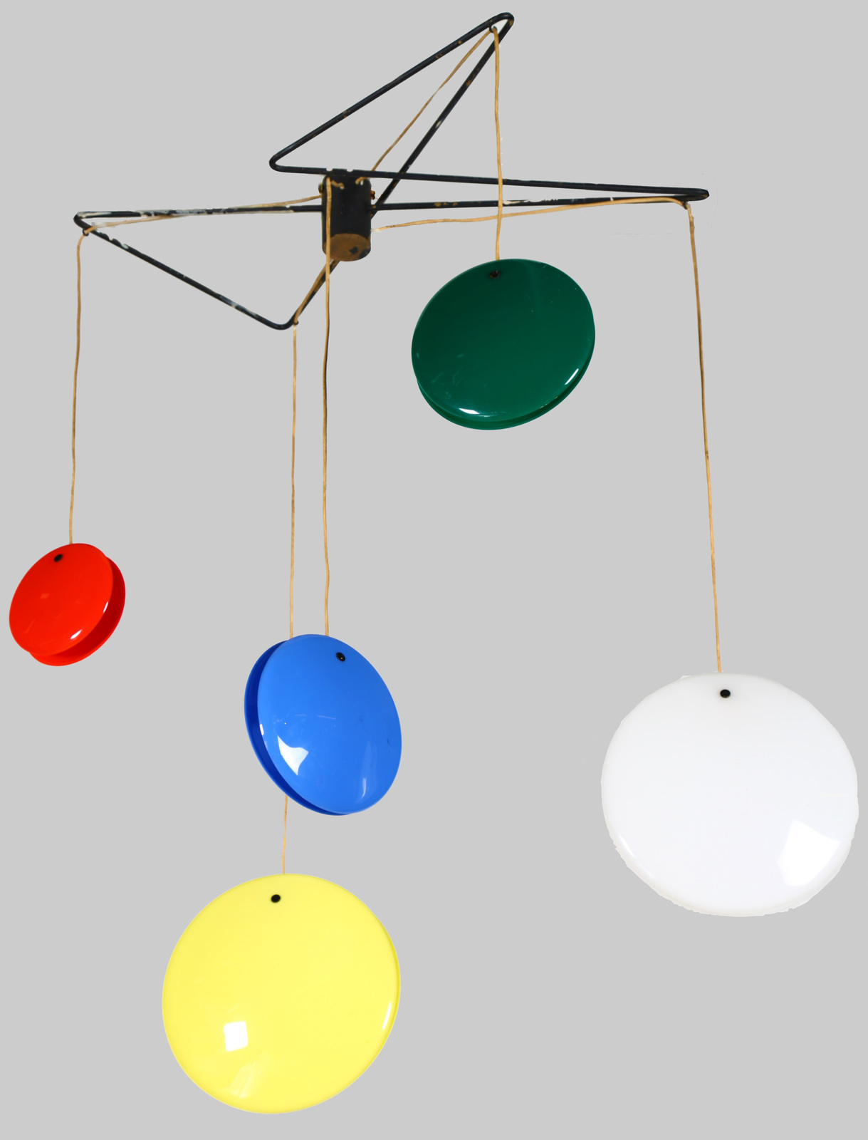 SARFATTI GINO (1912 - 1985) Lampadario Jo Jo mod. 2072 . -. . Struttura in metallo laccato e diffusori a doppia coppa in perspex nei colori del bianco rosso giallo e verde, per Arteluce, 1953.