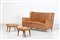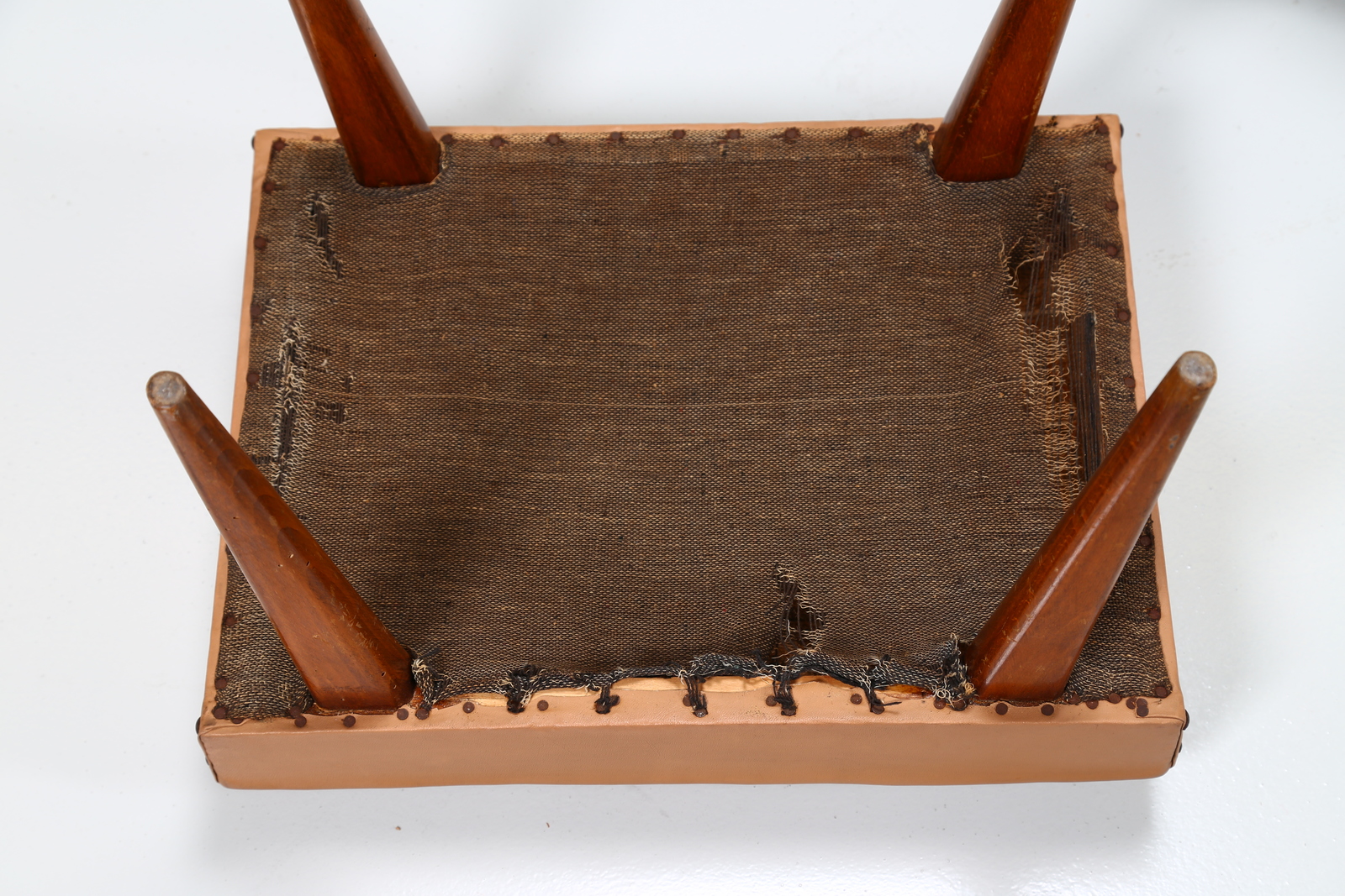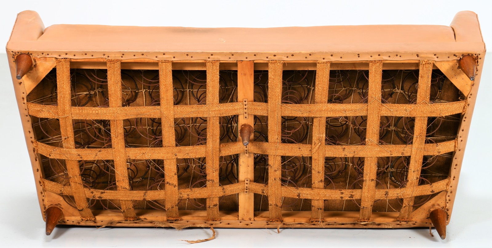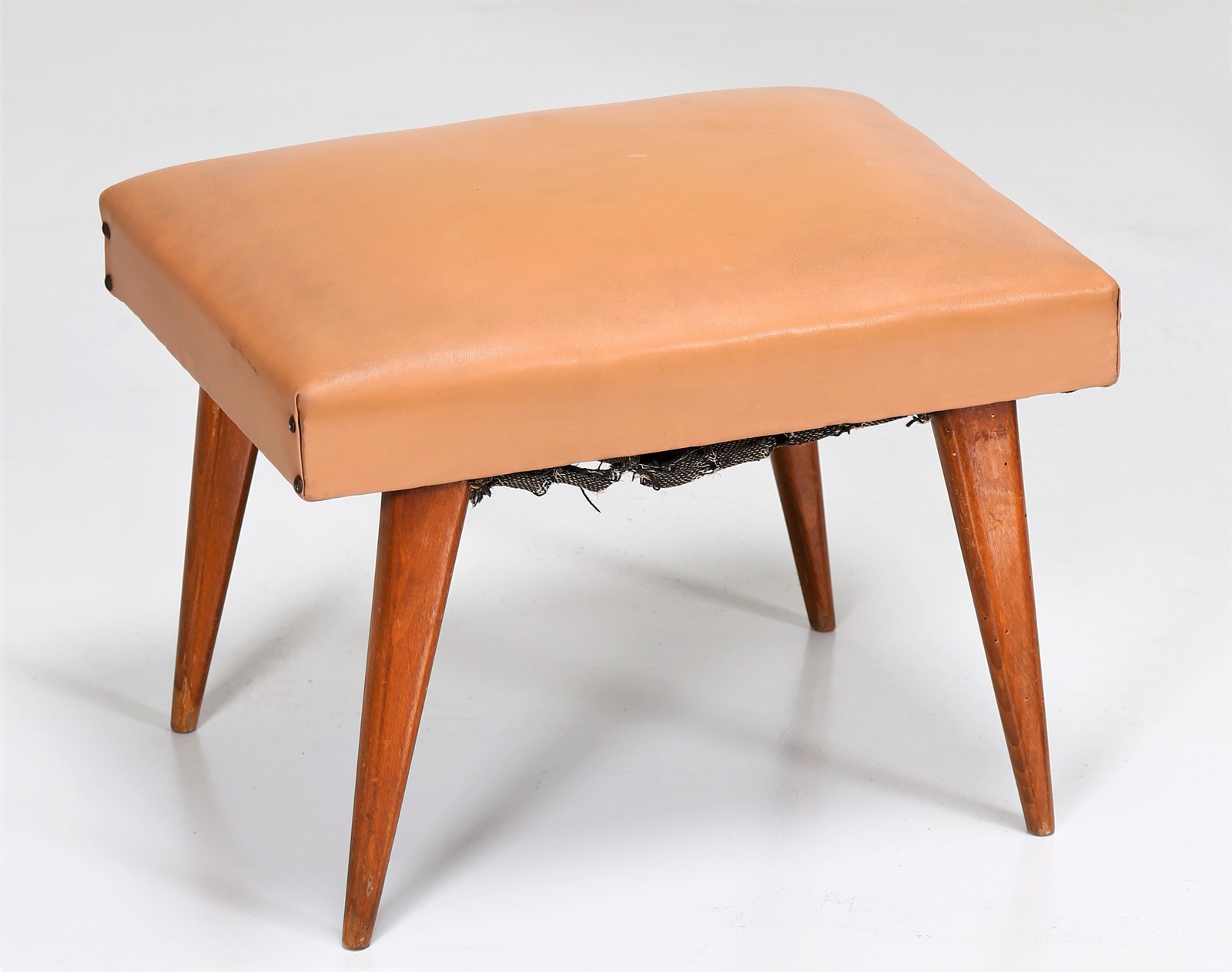 PONTI GIO' (1891 - 1979) Sofa and two stools. . . Wooden structure and imitation leather upholstery. Model created for the furnishings of the Conte Grande ocean liner, launched in 1949. Cassina, Italy, 1940.