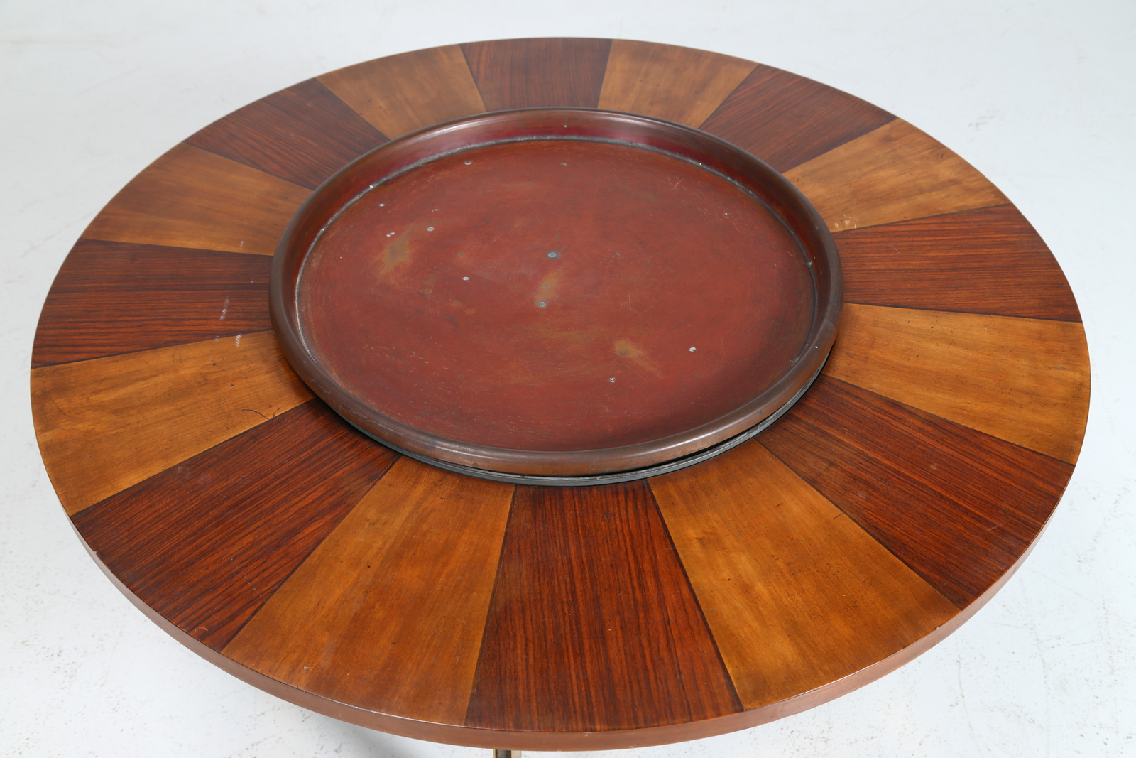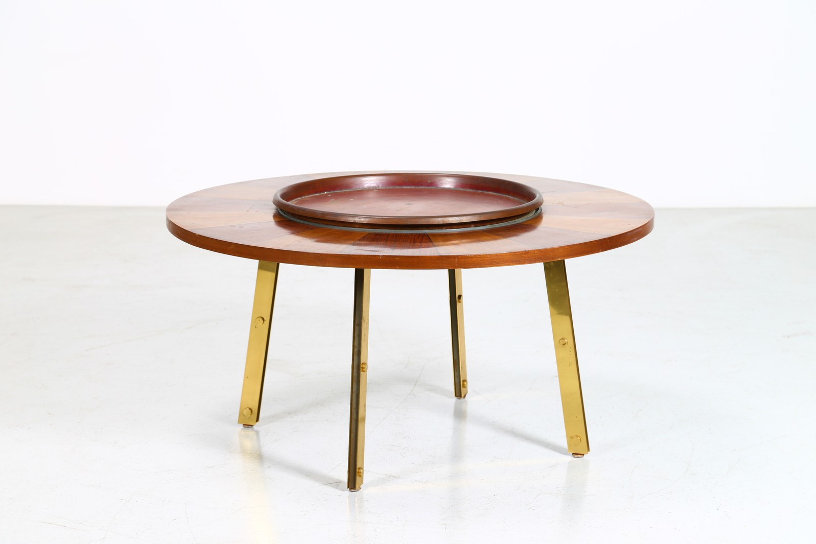 EDOARDO DETTI Pezzo unico. Tavolino tondo con piano girevole, presente disegno del progetto,. -. Cm 110,00 x 58,00 x 110,00. Legno, ottone e rame, per arredo Villa del Professor B. in Firenze, progetto e arredi dell’architetto Edoardo detti, è stato un architetto e urbanista italiano, tra i principali esponenti della corrente razionalista del Paese.