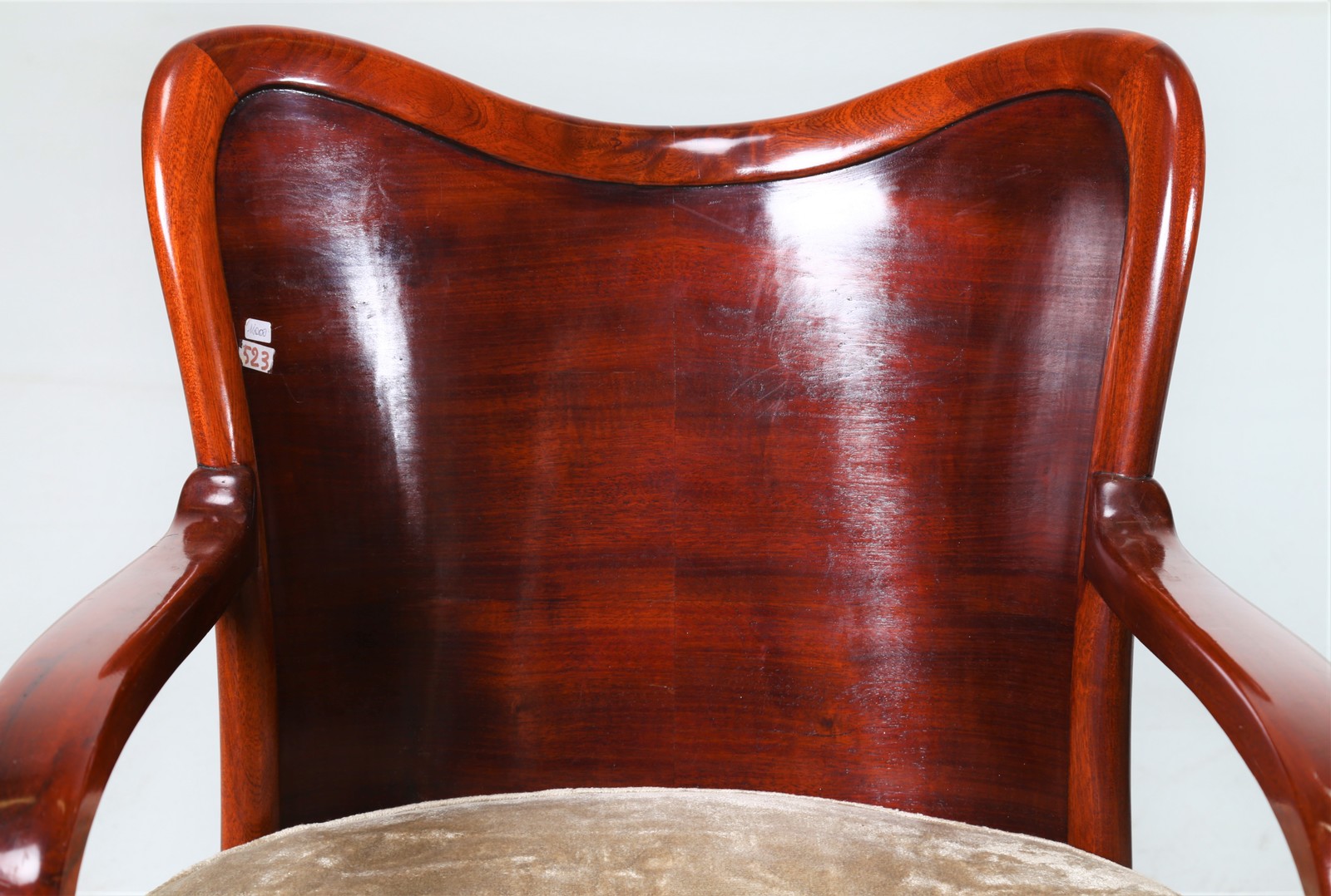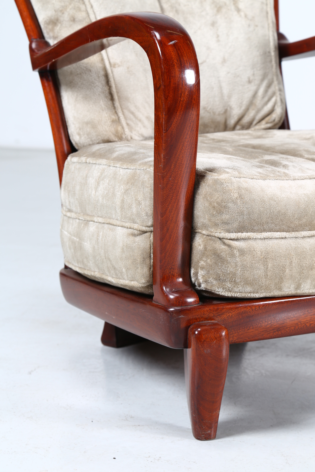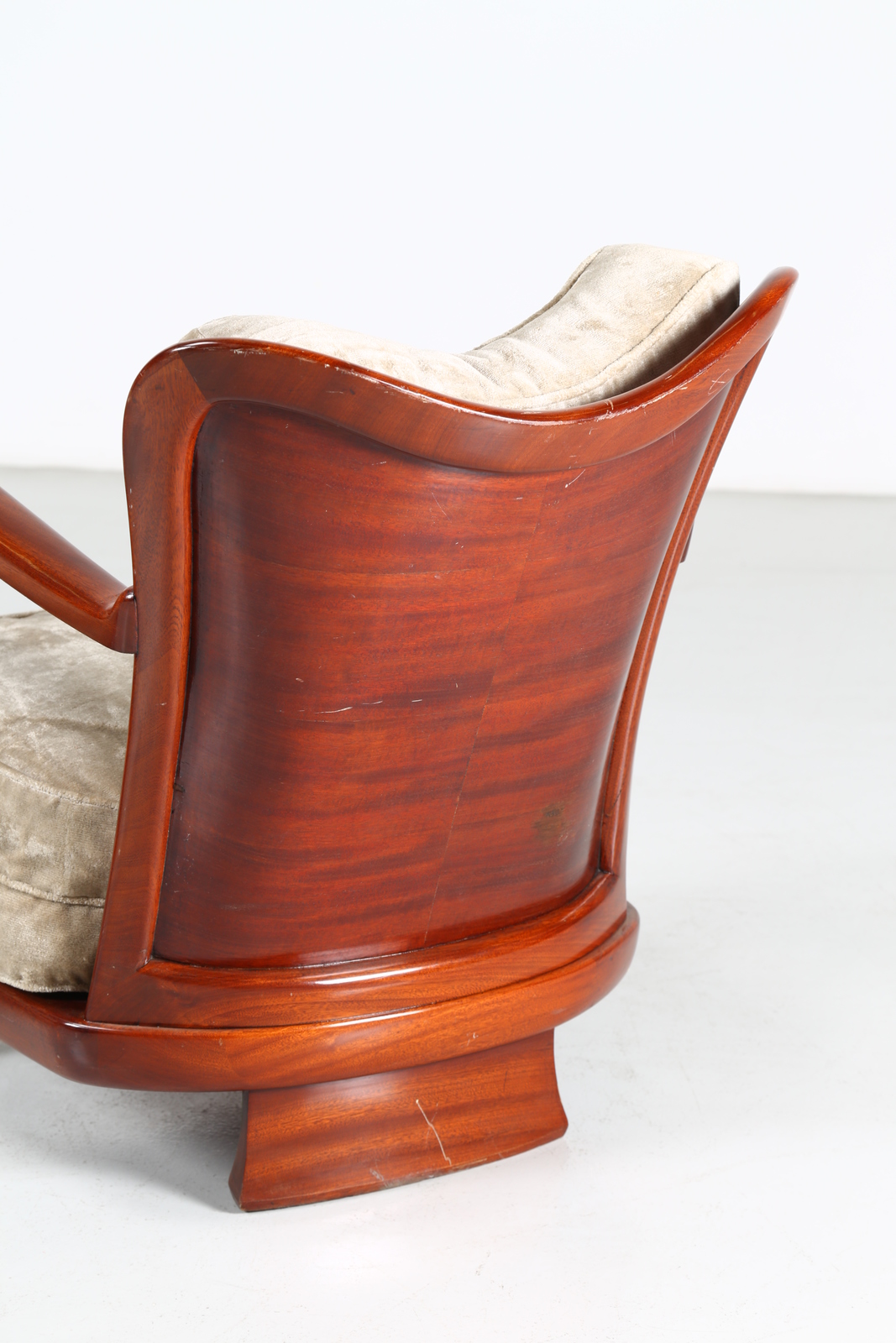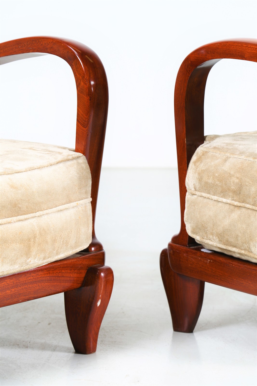VALABREGA VITTORIO Pair of armchairs, of four know. . Cm 66,00 x 80,00 x 75,00. Walnut and root, sitting and back covered in velvet, 1928.
