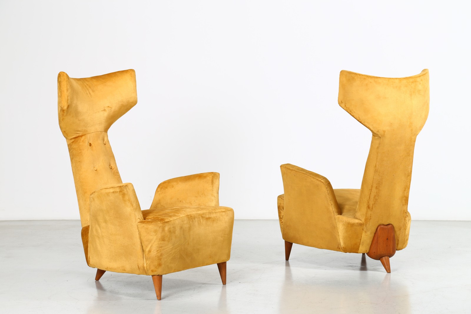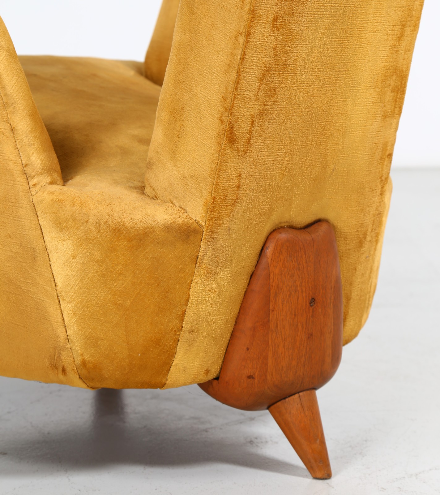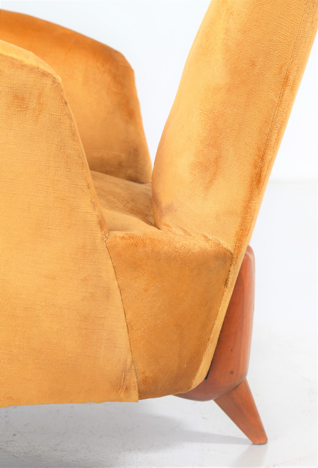 ZAVANELLA RENZO Pair of armchairs. . Cm 77,00 x 113,00 x 83,00. Walnut and fabric, 50s. Expertice by Renzo Zavanella Archive.