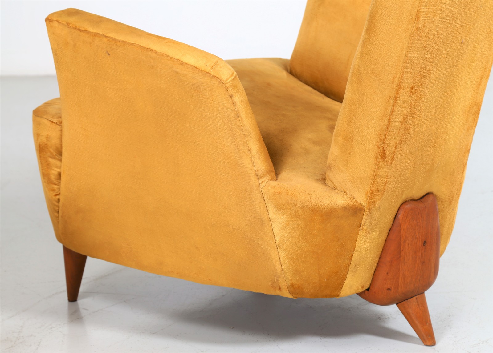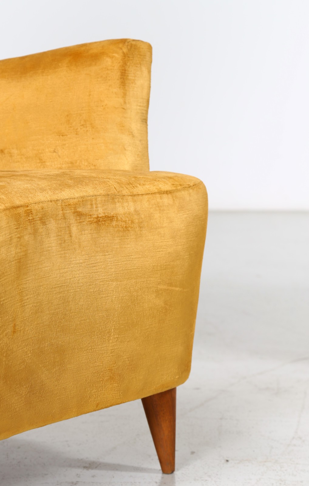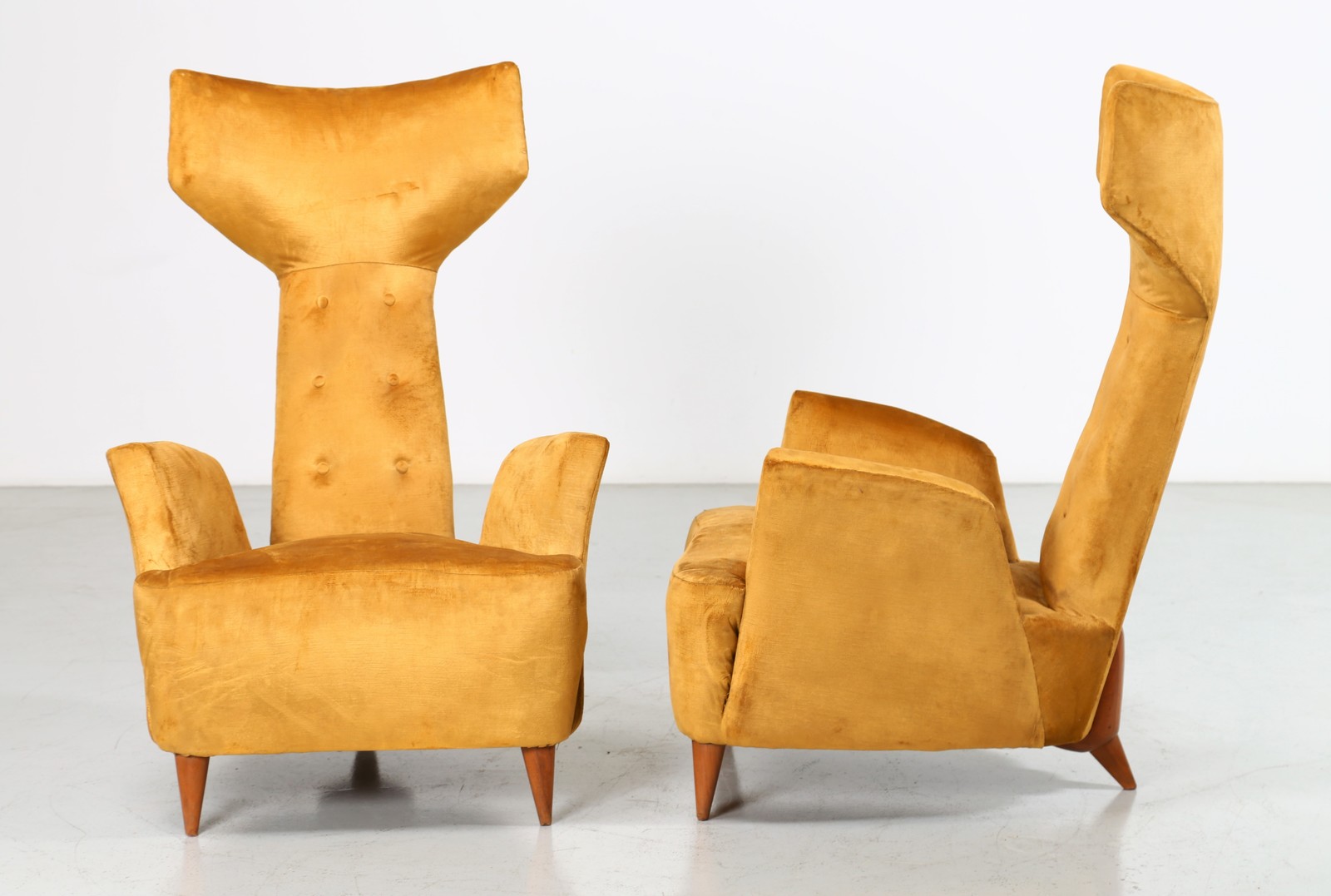 ZAVANELLA RENZO Pair of armchairs. . Cm 77,00 x 113,00 x 83,00. Walnut and fabric, 50s. Expertice by Renzo Zavanella Archive.