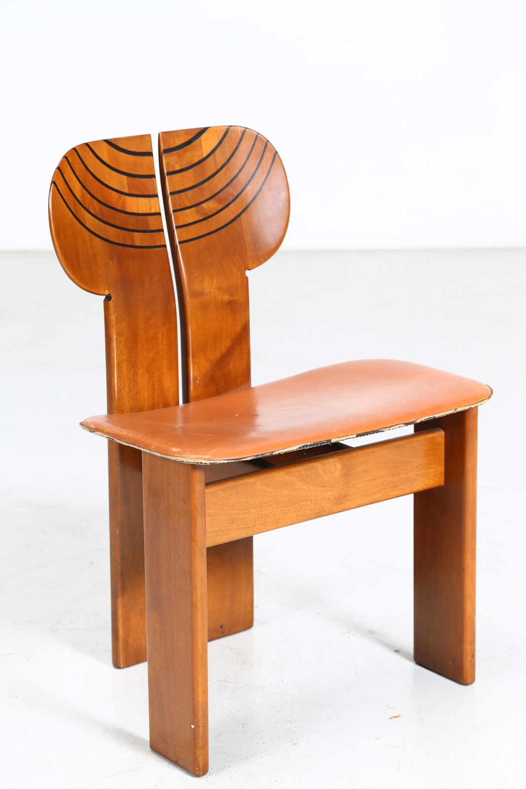 SCARPA TOBIA (n. 1935) Otto sedie mod. Africa. . Cm 54,00 x 78,00 x 44,00. Struttura in legno di noce con intarsi ebanizzati e pelle, serie Artona prodotta da Maxalto 1970