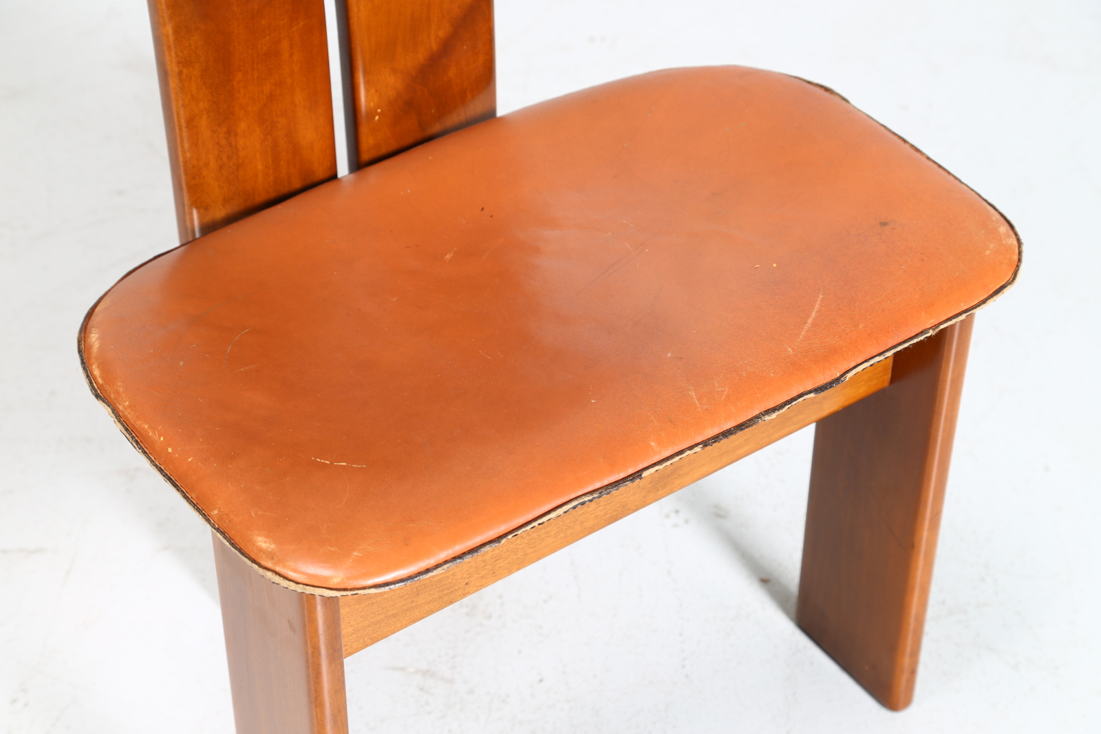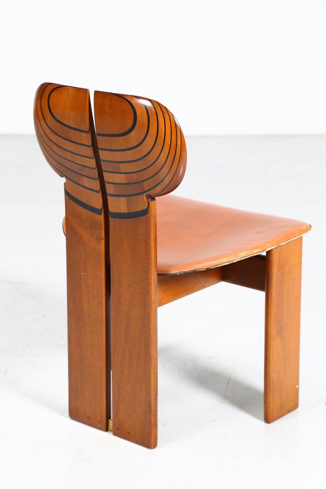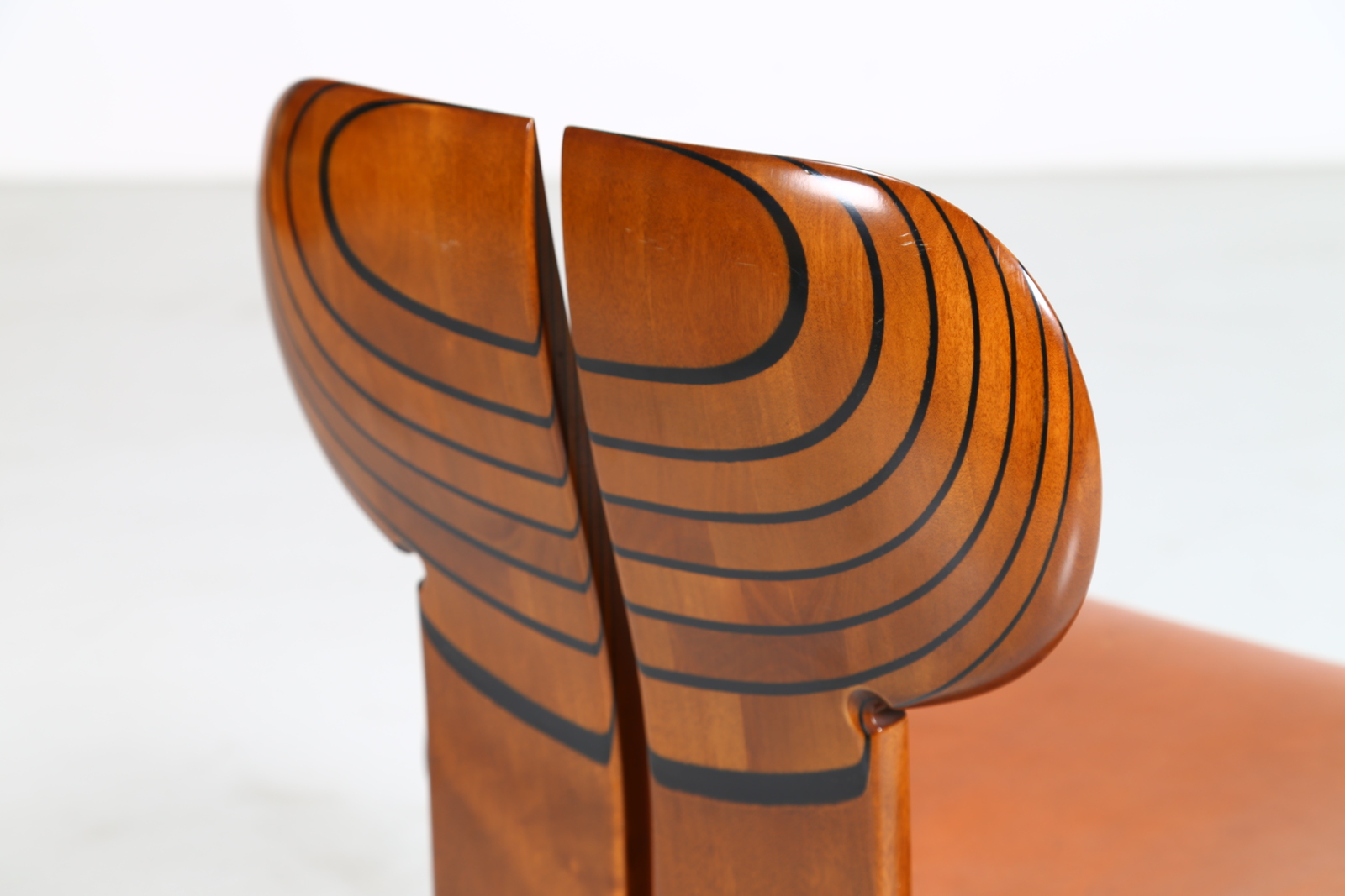 SCARPA TOBIA (n. 1935) Eight chair mod. Africa. . Cm 54,00 x 78,00 x 44,00. Walnut structure with ebonizing inlays and leather, Artona series, made by Maxalto, 1970.