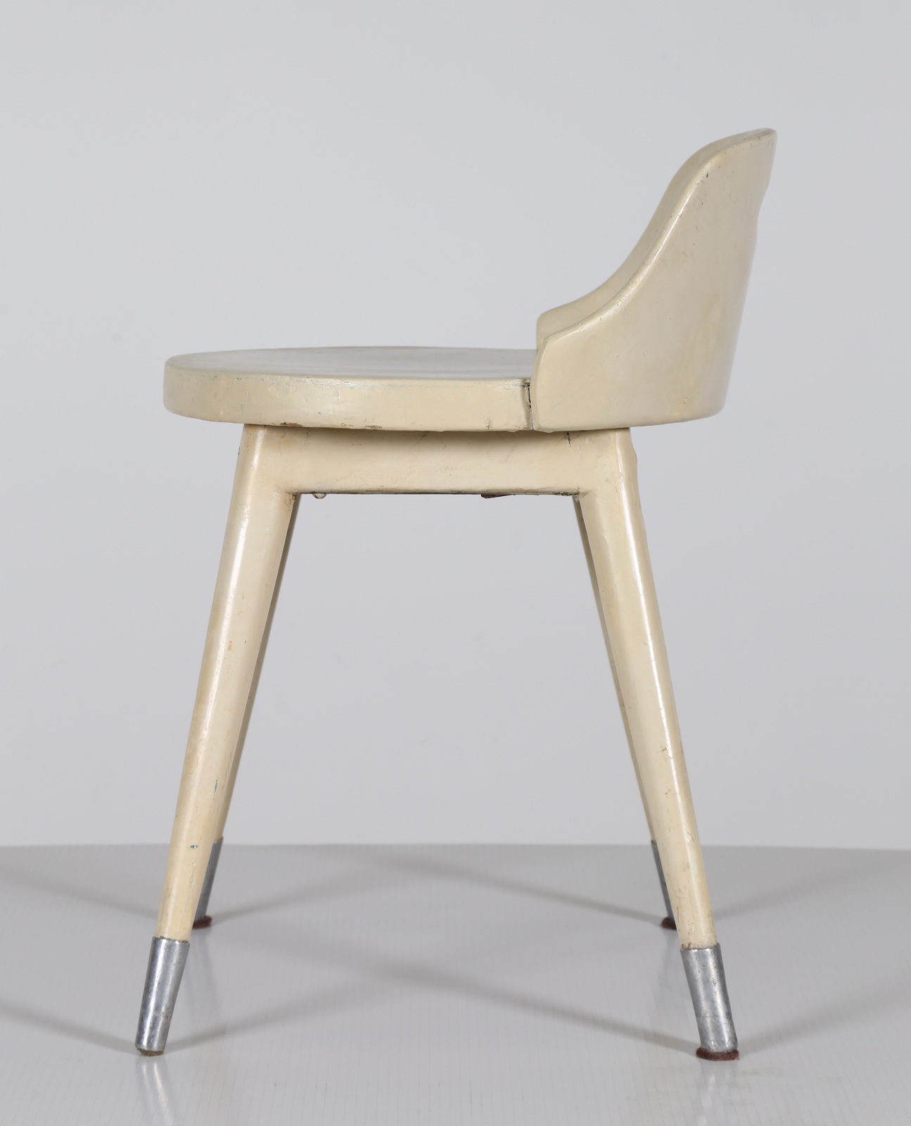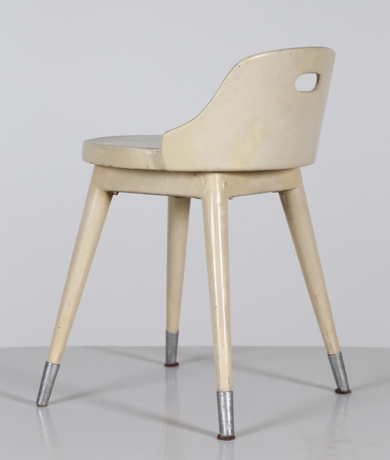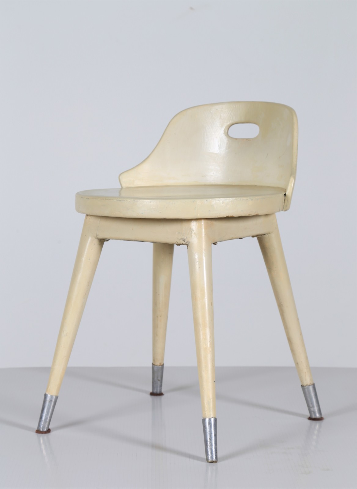 PARISI ICO (1916 - 1996) Sgabello da cucina. -. Cm 39,00 x 59,50 x 39,00. Legno laccato e alluminio, per Fratelli Rizzi 1950. Pubblicazioni; Ico Parisi Design, Catalogo Ragionato, Silvana Editoriale a cura di Roberta Lietti, pag. 459. Pubblicazioni; Domus num. 288, novembre 1953 pag. 61, 62; Domus num. 307, giugno 1955 pag. 54; Mobili tipo di Roberto Aloi, ed. Ulrico Hoepli, 1956.
