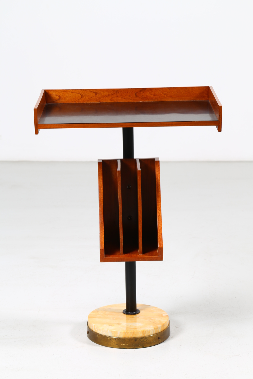 GARDELLA IGNAZIO (1905 - 1999) Tavolino porta telefono. -. Cm 62,00 x 89,50 x 40,00. Legno, metallo, ottone e marmo, anni 50