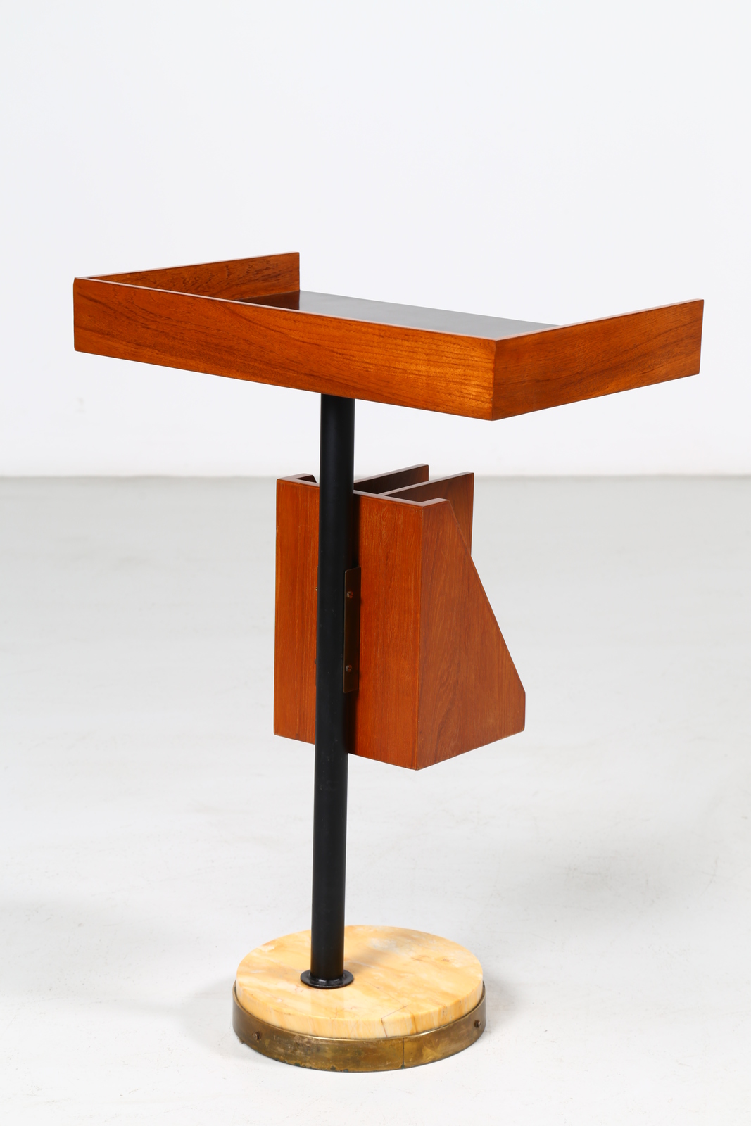 GARDELLA IGNAZIO (1905 - 1999) Telephone table. . Cm 62,00 x 89,50 x 40,00. Wood, metal, brass and marble, 50s.