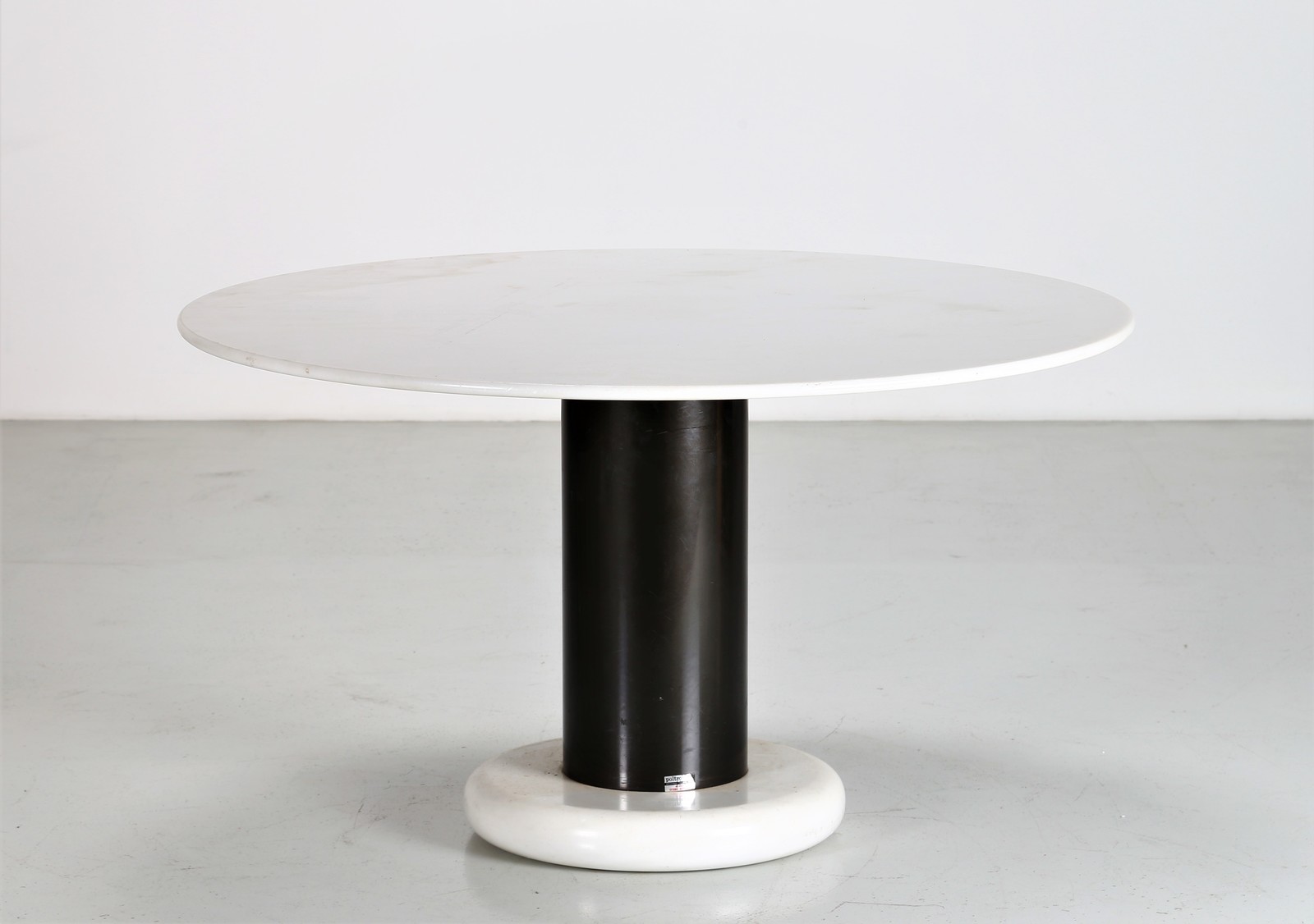 SOTTSASS ETTORE (1917 - 2007) Tavolo tondo mod. Lotorosso. -. Cm 120,00 x 68,00 x 120,00. Marmo e metallo, per Poltronova 1965