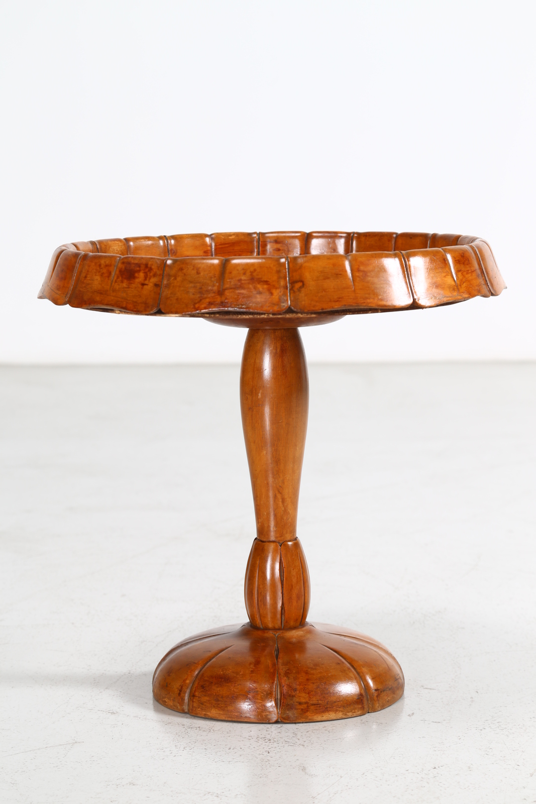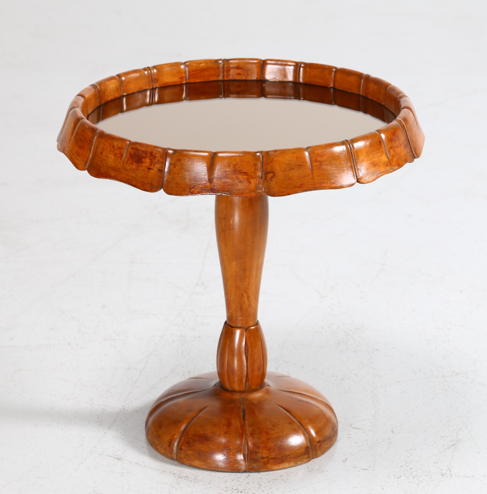 BORSANI OSVALDO (1911 - 1985) Tavolino tondo. -. Cm 47,50 x 46,00 x 47,50. Legno e vetro, anni 40