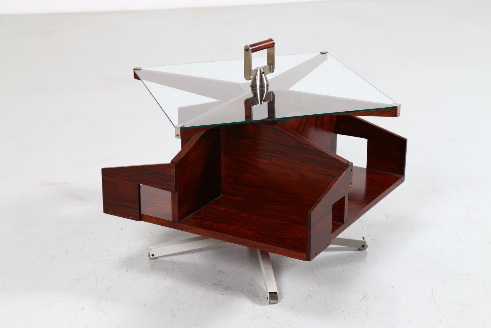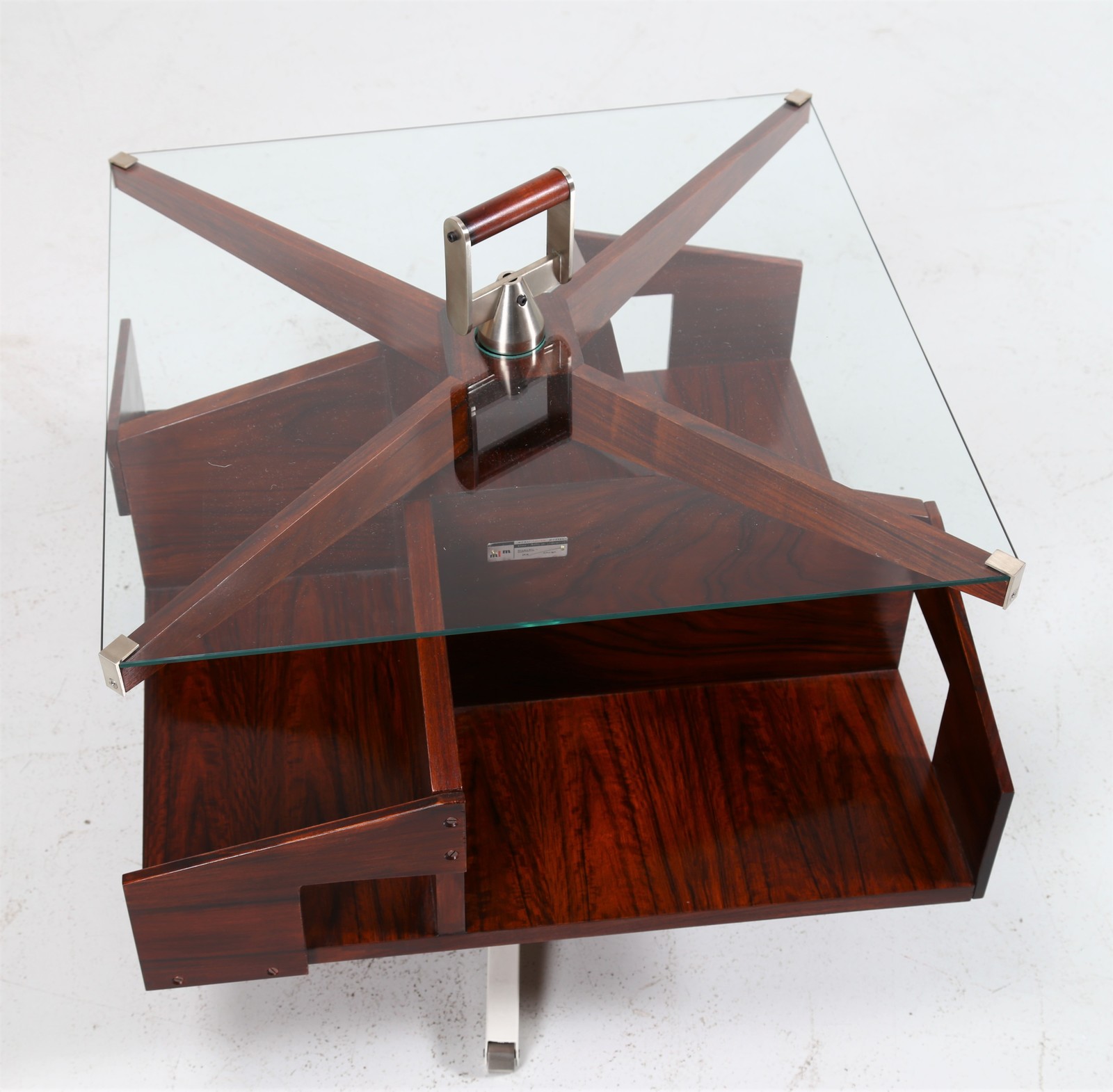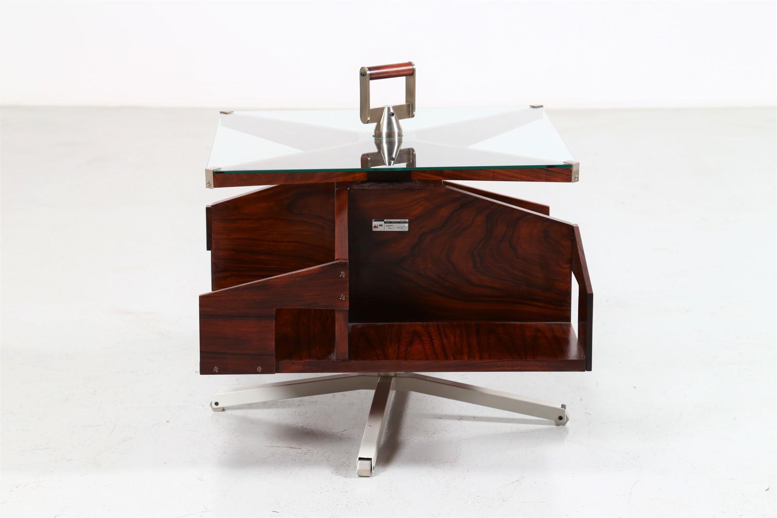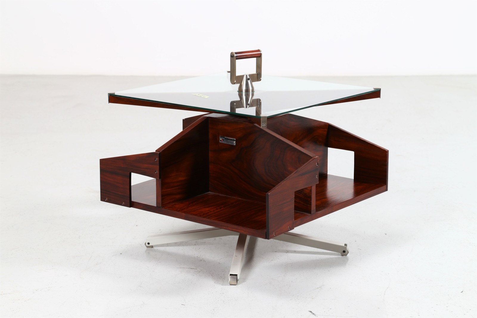 PARISI ICO (1916 - 1996) Small table with rotating tops. . Cm 60,00 x 50,00 x 60,00. Rosewood, metal and glass, for MIM Roma, 1958. Certificate of authenticity available. Archivio del Design di Ico Parisi. Publications: Ico Parisi Design, Catalogo Ragionato, Silvana Editoriale by Roberta Lietti, p. 571, 1958.MB.